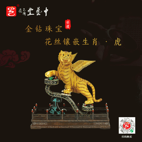 首页 > 花丝镶嵌丨苏绣 > 花丝镶嵌 > 王树文 > 【中藝堂】王树文花丝镶嵌十二生肖·虎特色年货家居摆件