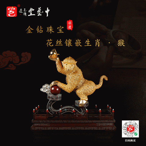 首页 > 花丝镶嵌丨苏绣 > 花丝镶嵌 > 王树文 > 【中藝堂】王树文花丝镶嵌十二生肖·猴特色年货家居摆件