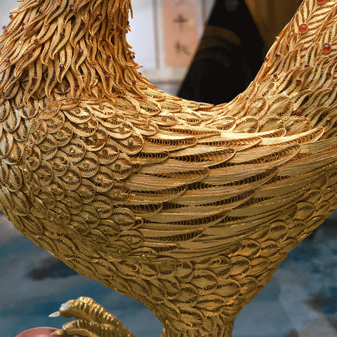 首页 > 花丝镶嵌丨苏绣 > 花丝镶嵌 > 王树文 > 【中藝堂】王树文花丝镶嵌十二生肖·鸡特色年货家居摆件