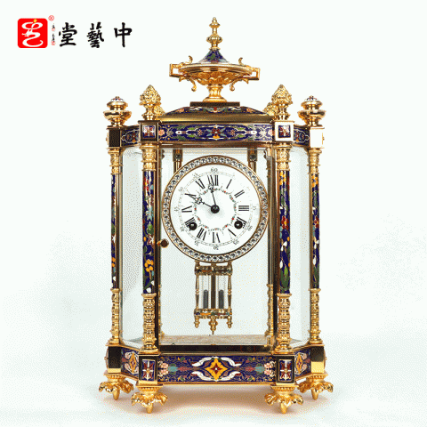 【中藝堂】 刘永森 钟声平安珐琅六柱钟