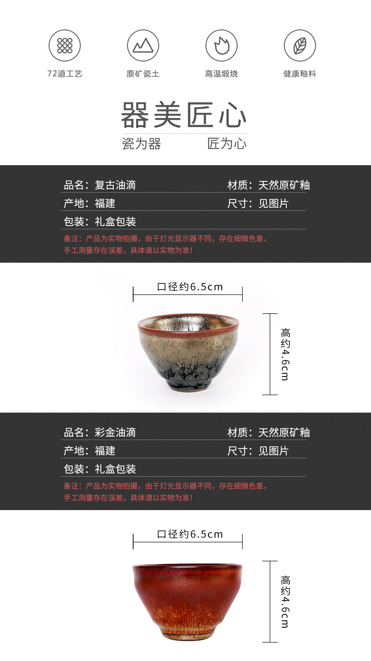 首页 > 精美茶器丨纪念币 > 精美茶器 > 【中藝堂】建阳建盏 彩金油滴
