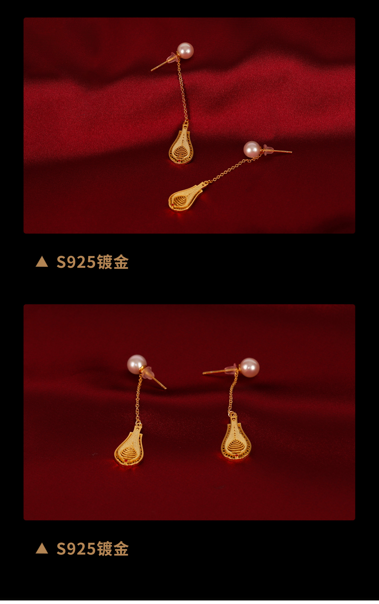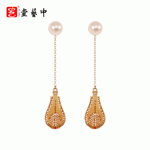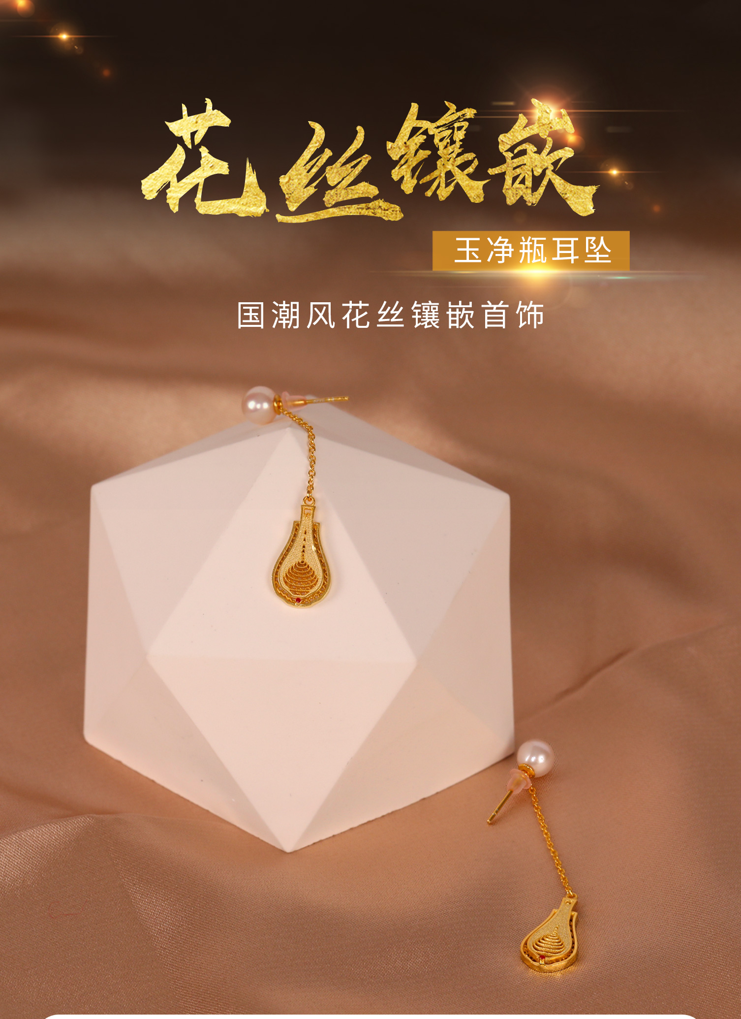 首页 > 花丝镶嵌丨苏绣 > 花丝镶嵌 > 【中藝堂】 花丝镶嵌首饰 玉净瓶耳坠