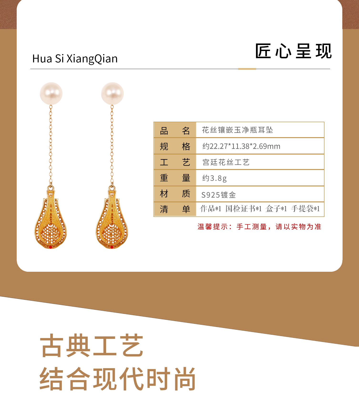 【中藝堂】 花丝镶嵌首饰 玉净瓶耳坠