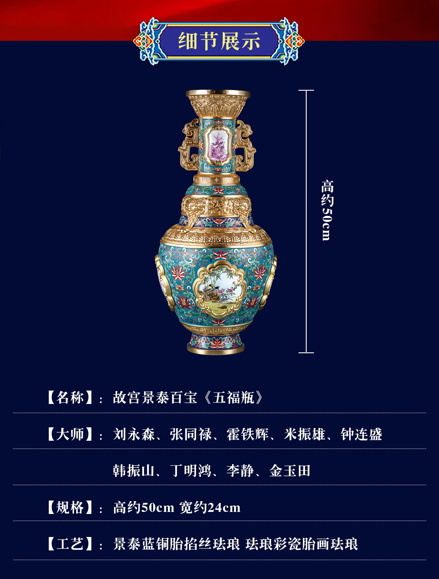 首页 > 景泰蓝丨玉器 > 景泰蓝 > 霍铁辉 > 【中藝堂】景泰百宝·《五福瓶》