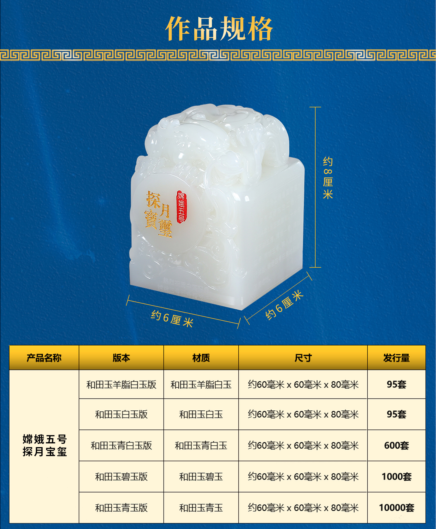 【中藝堂】 郭鸣、孟庆东、冯延明、徐瑞卿《嫦娥五号探月宝玺》白玉版