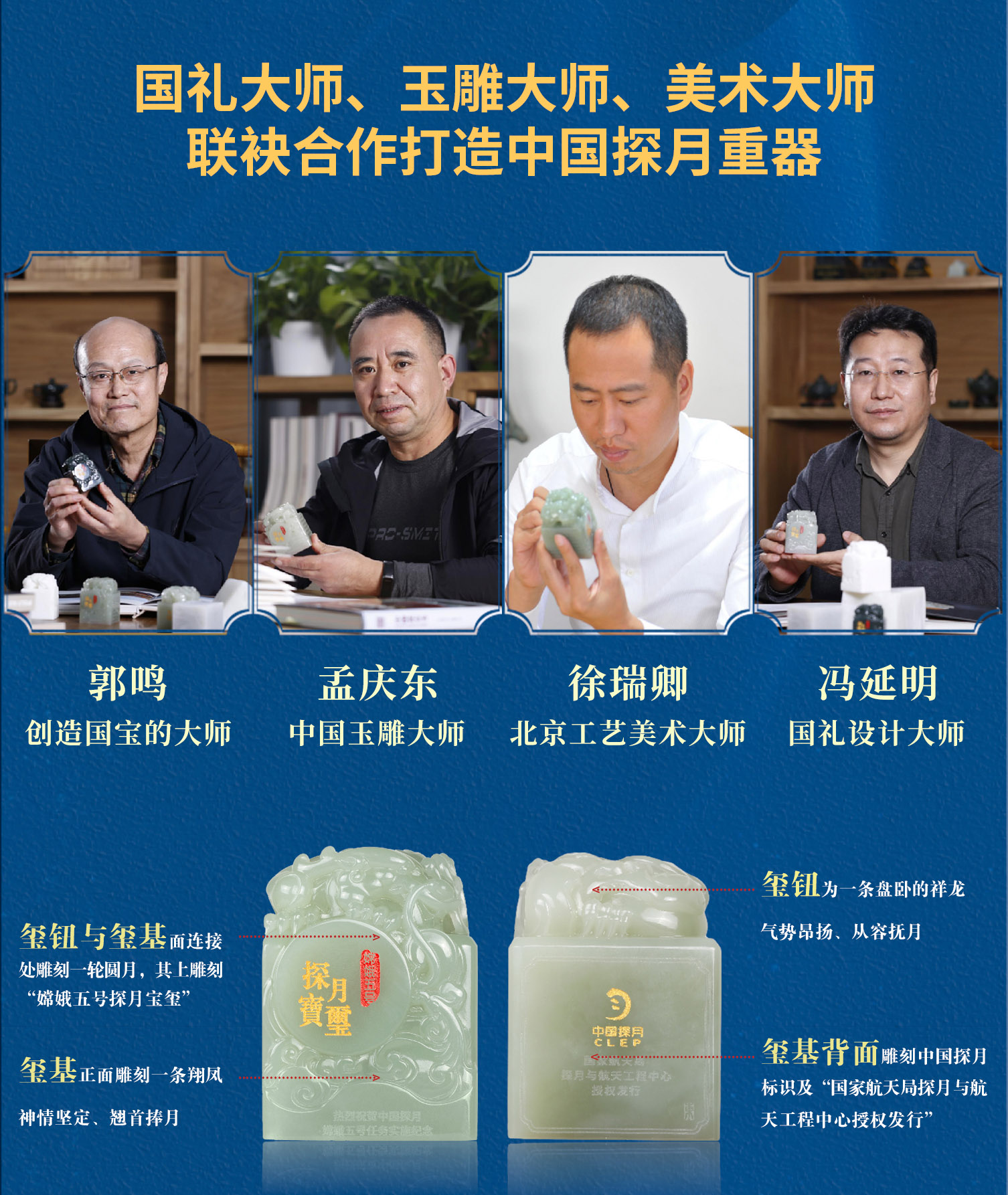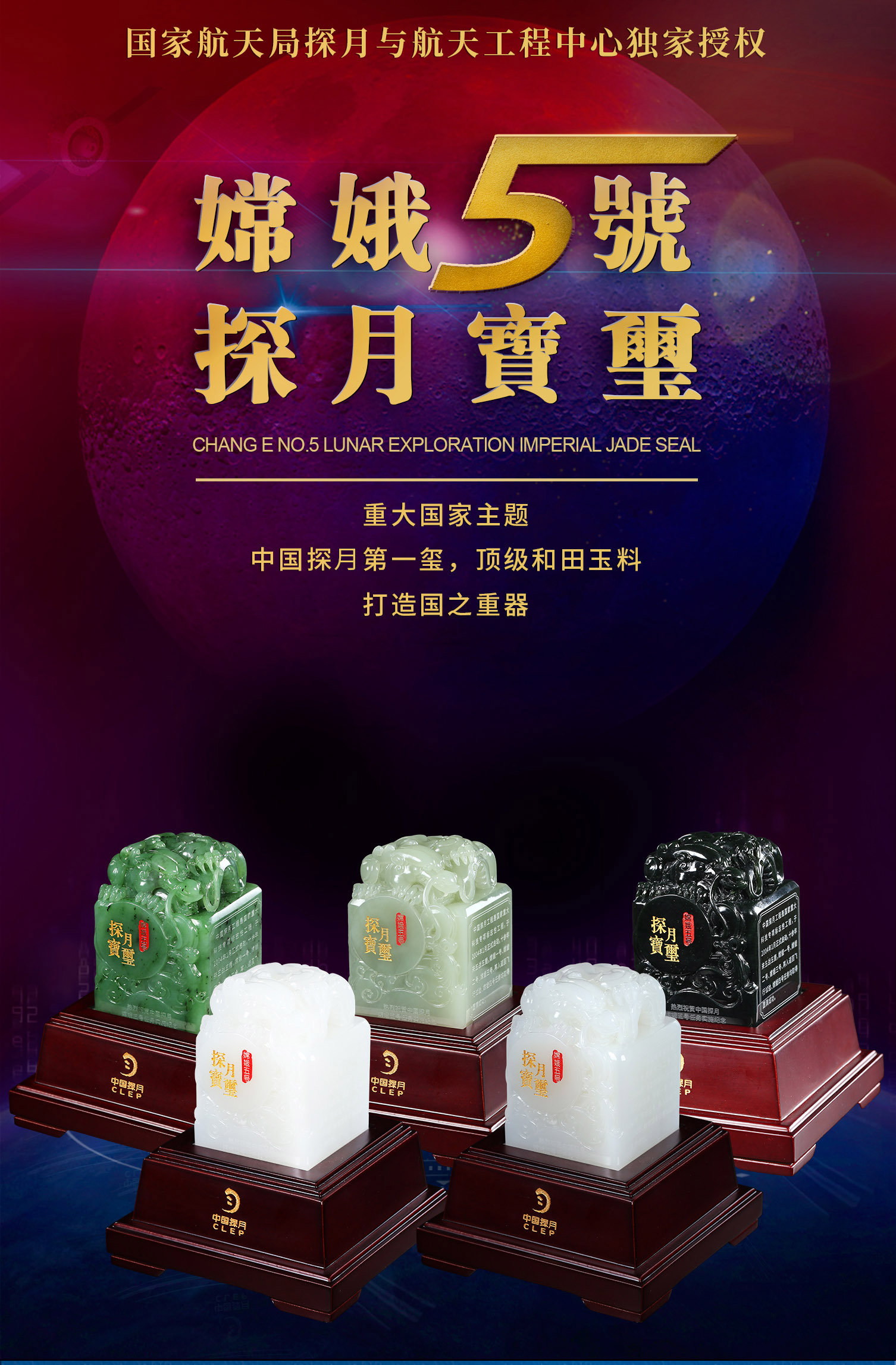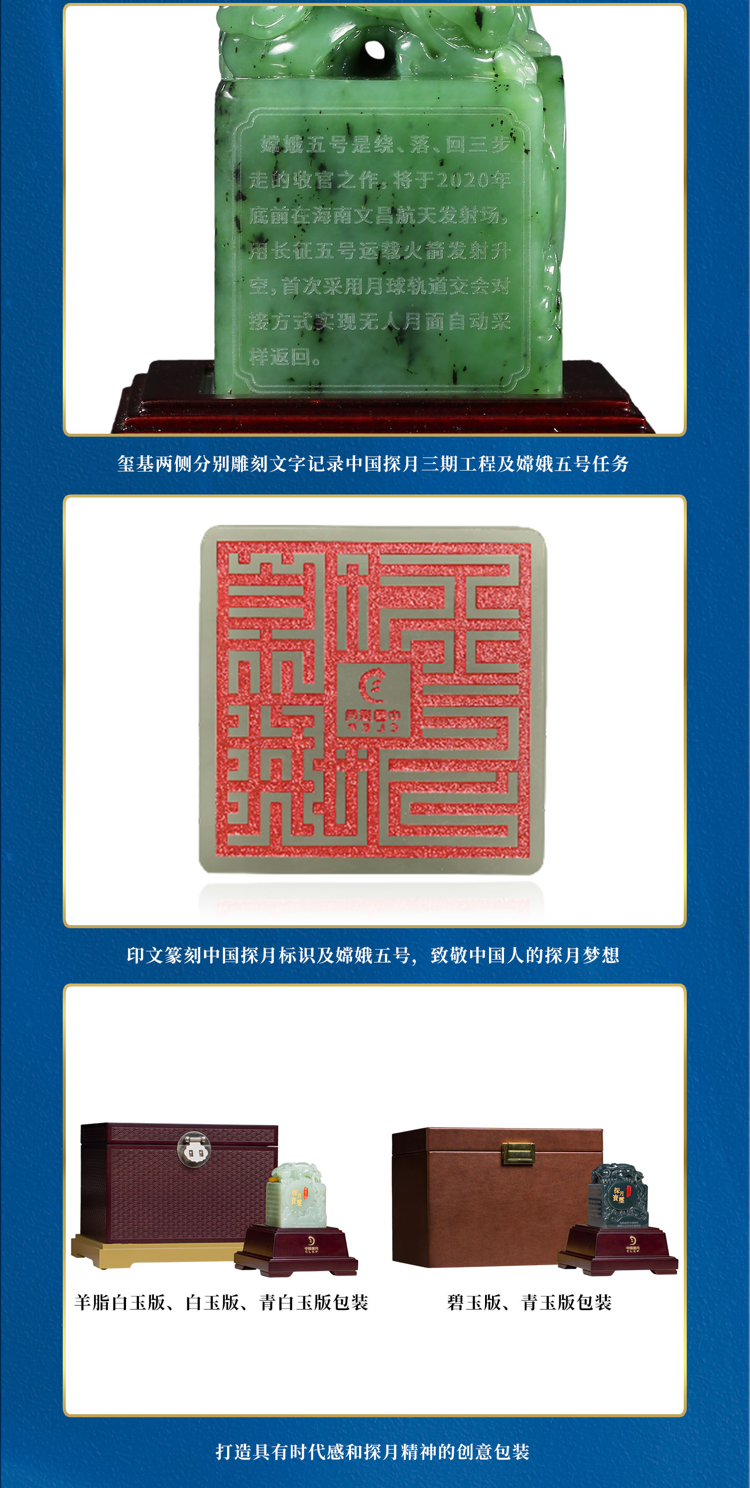 【中藝堂】郭鸣、孟庆东、冯延明、徐瑞卿《嫦娥五号探月宝玺》碧玉版