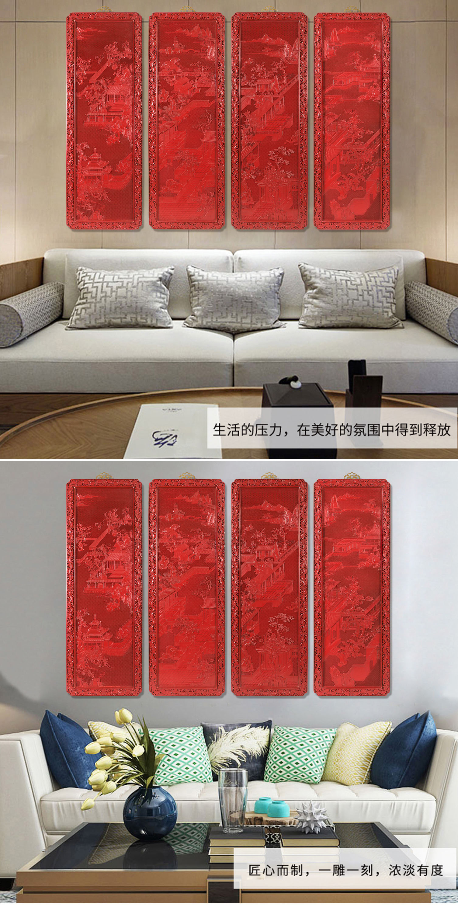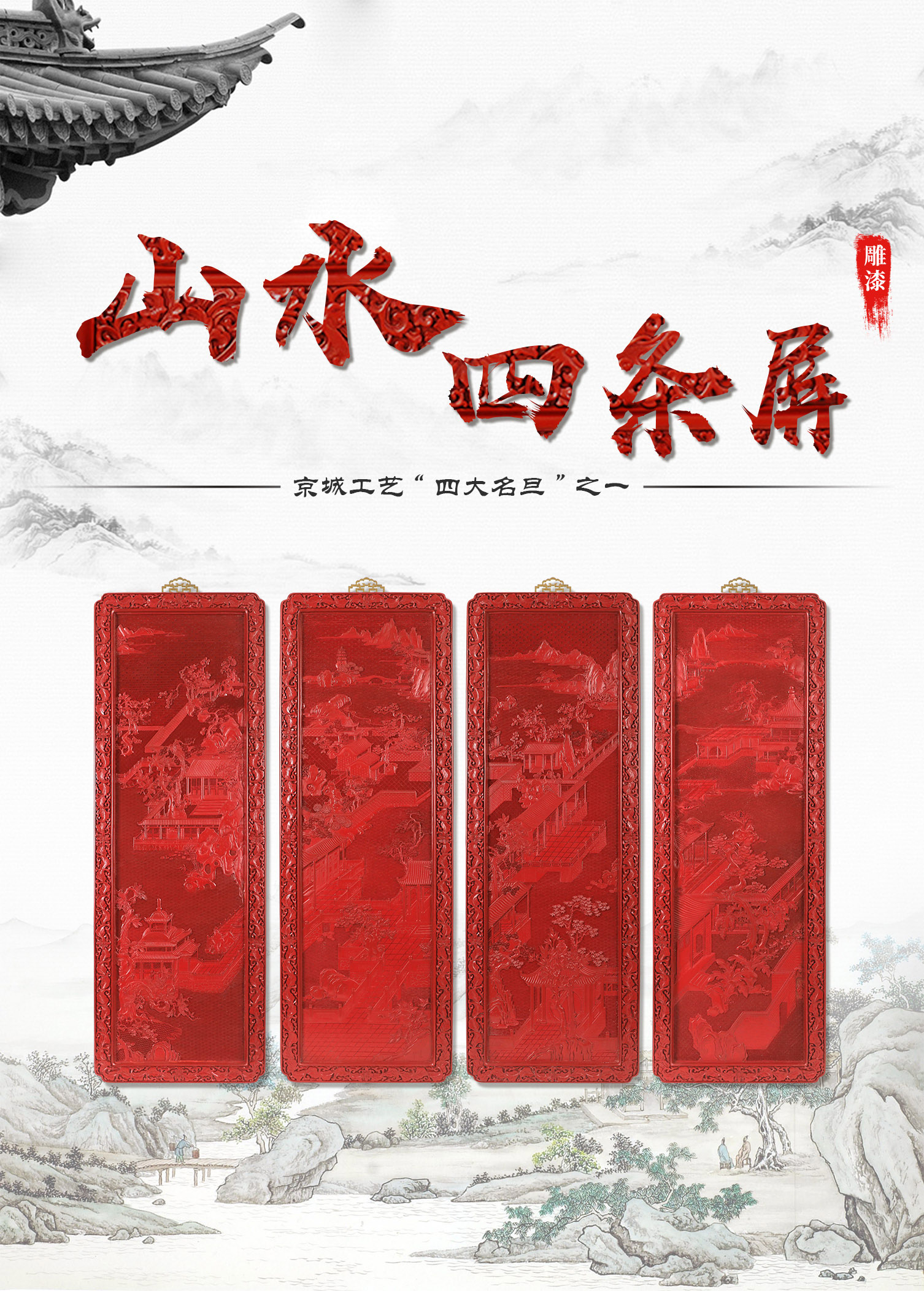 首页 > 錾刻丨紫砂丨雕漆 > 雕漆 > 杨之新 > 【中藝堂】杨之新 雕漆 《山水四条屏》