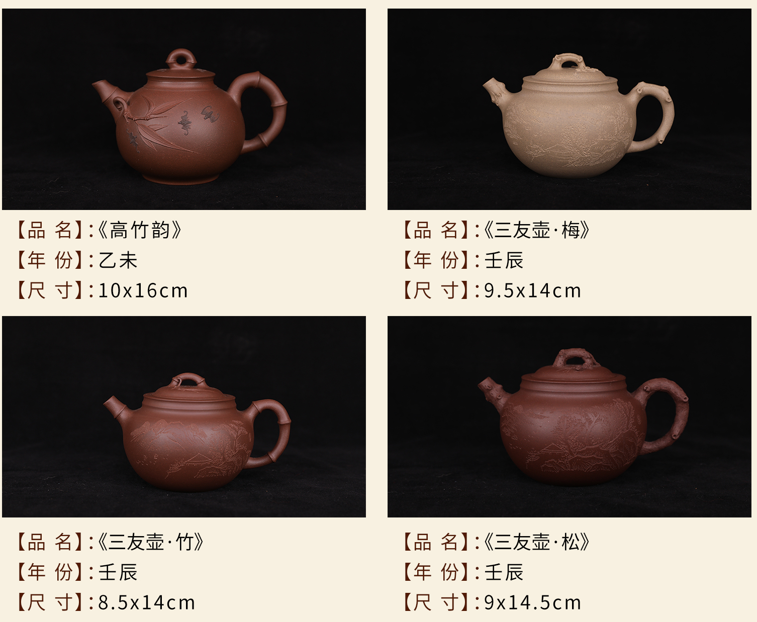 首页 > 錾刻丨紫砂丨雕漆 > 紫砂 > 李昌鸿 > 【中藝堂】李昌鸿 《三友壶·梅》 、《三友壶·松》、《三友壶·竹》、《腰线竹节》、《竹韵》