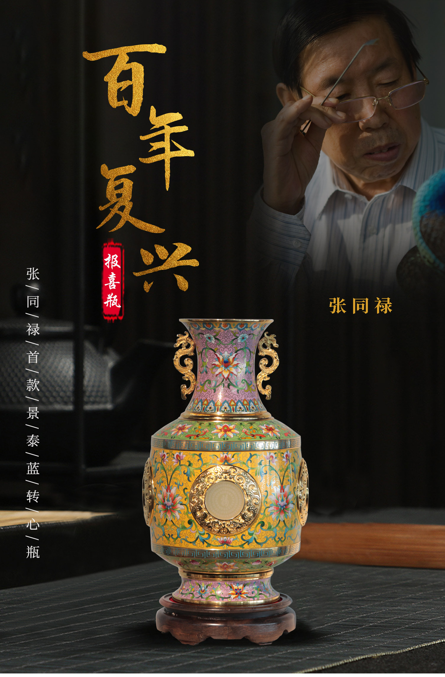 张同禄《百年复兴报喜瓶》景泰蓝乾隆官窑转心瓶