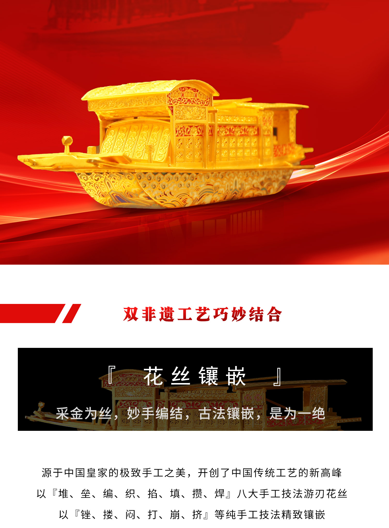 首页 > 花丝镶嵌丨苏绣 > 花丝镶嵌 > 【盛世花丝红船】钟连盛 赵春明老师作品