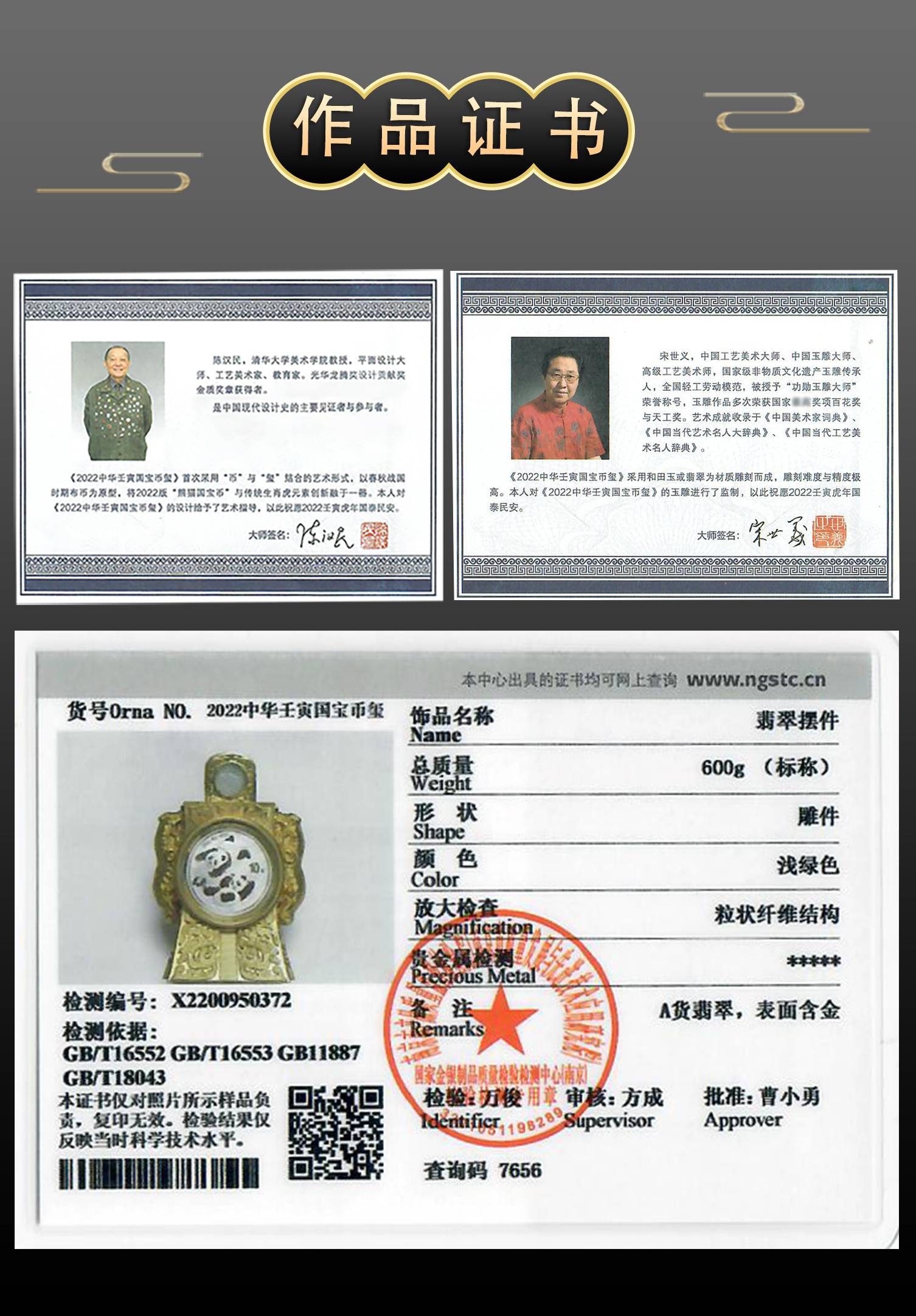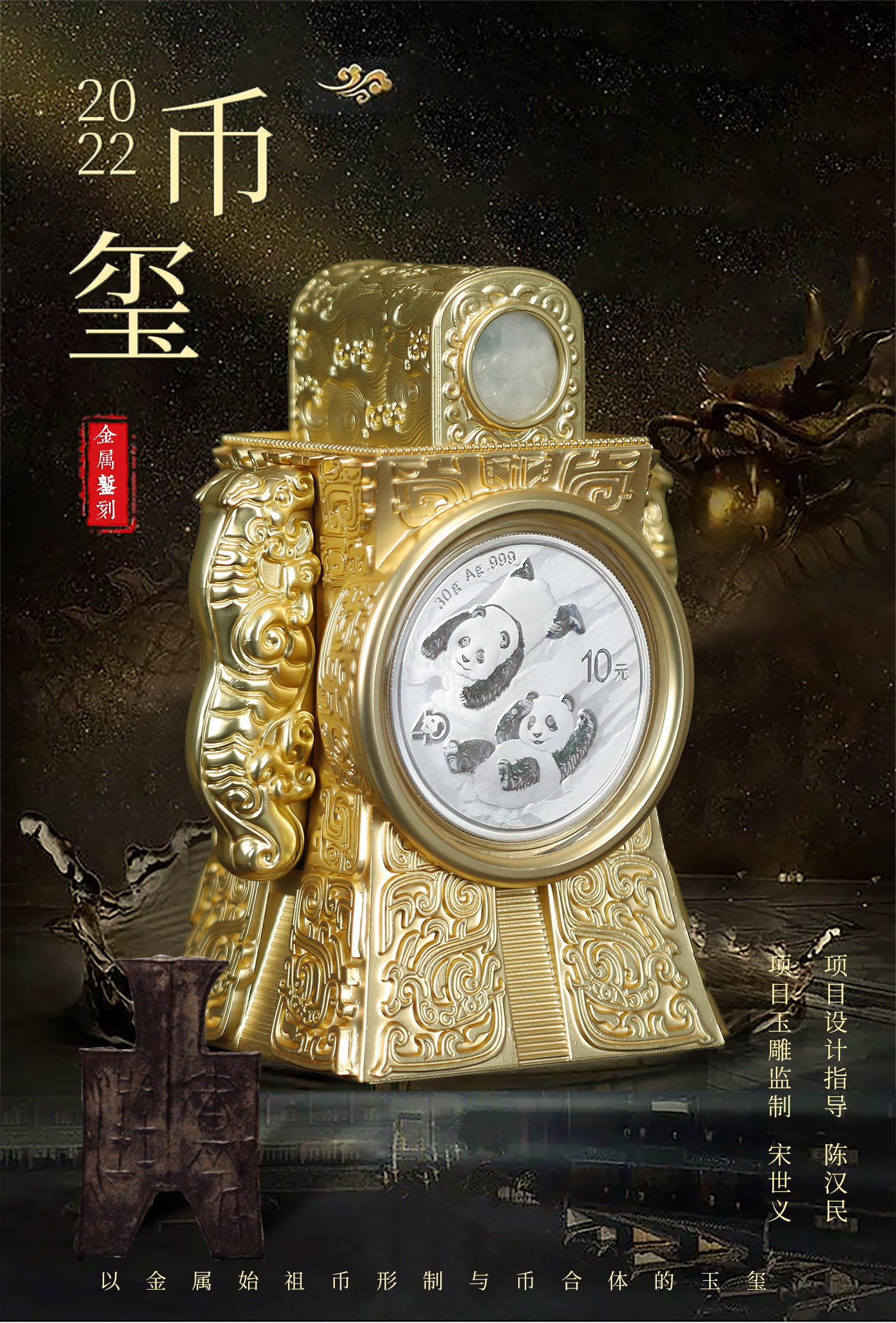 首页 > 景泰蓝丨玉器 > 玉器 > 宋世义 > 2022中华壬寅国宝碧玺带熊猫面值金属錾刻玉雕结合币玺