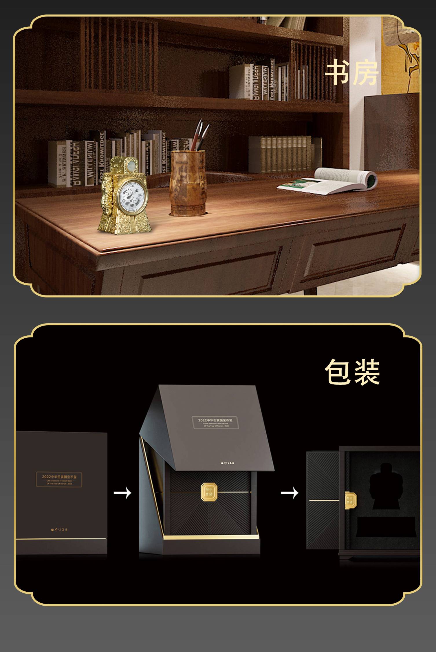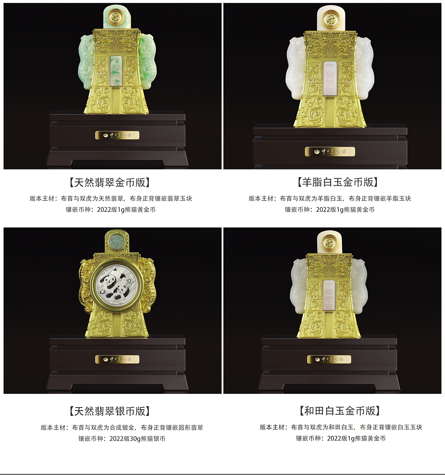 2022中华壬寅国宝碧玺带熊猫面值金属錾刻玉雕结合币玺