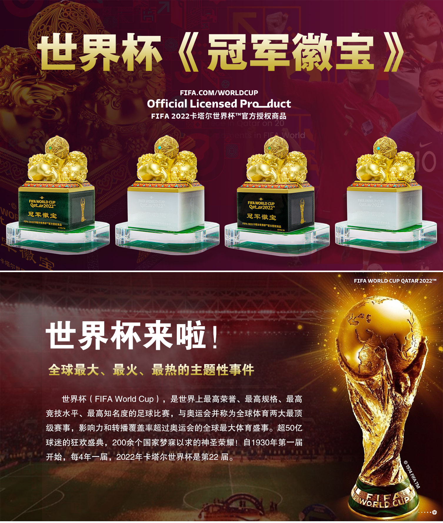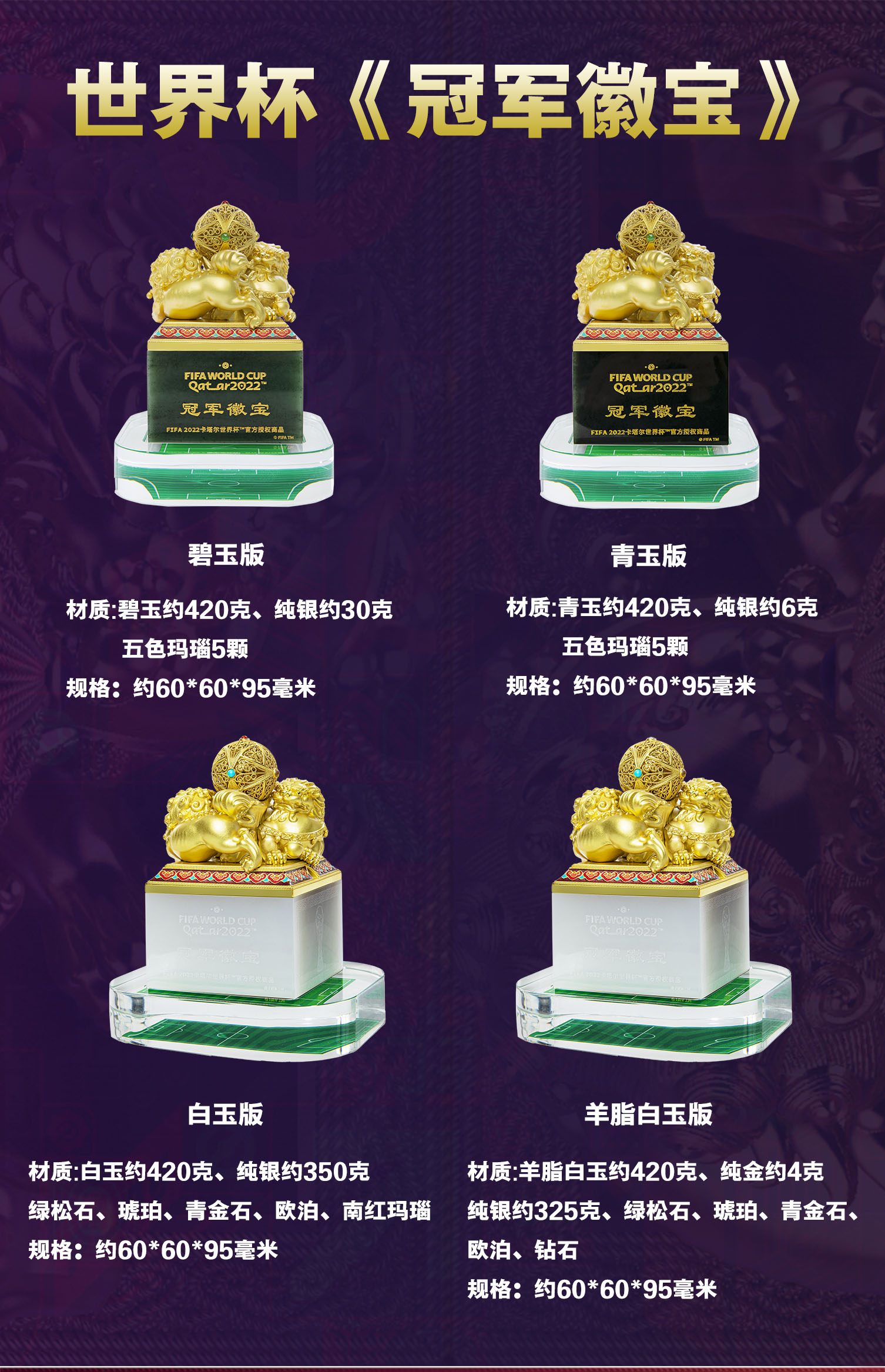 世界杯《冠军徽宝》FIFA2022卡塔尔世界杯首款官方授权玉玺