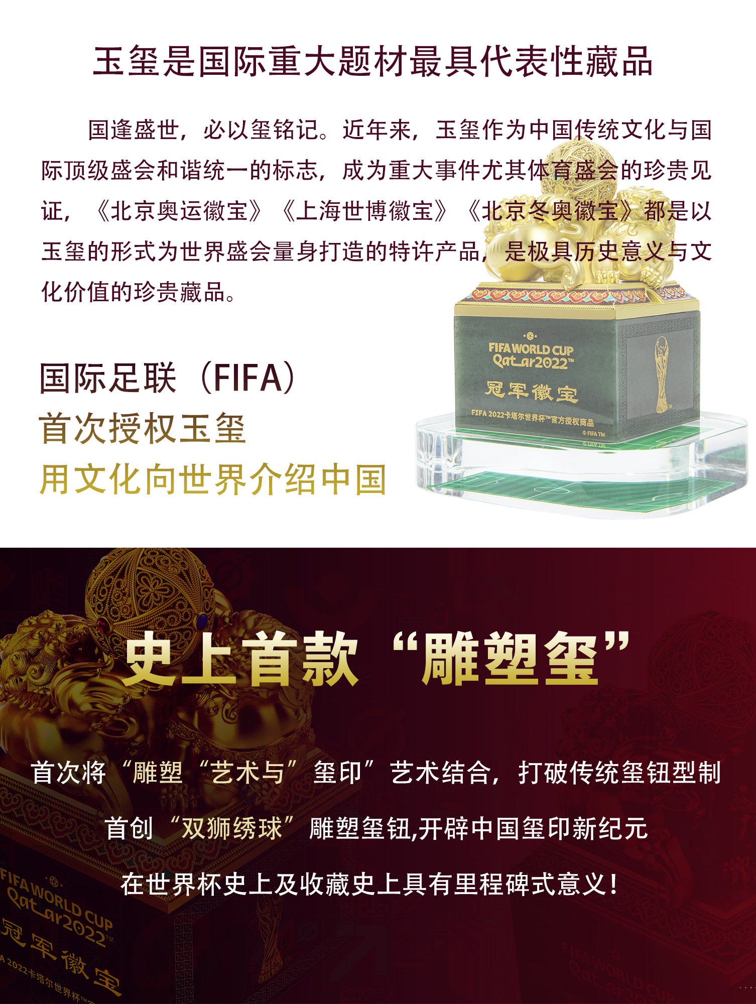 首页 > 景泰蓝丨玉器 > 玉器 > 李东 > 世界杯《冠军徽宝》FIFA2022卡塔尔世界杯首款官方授权玉玺