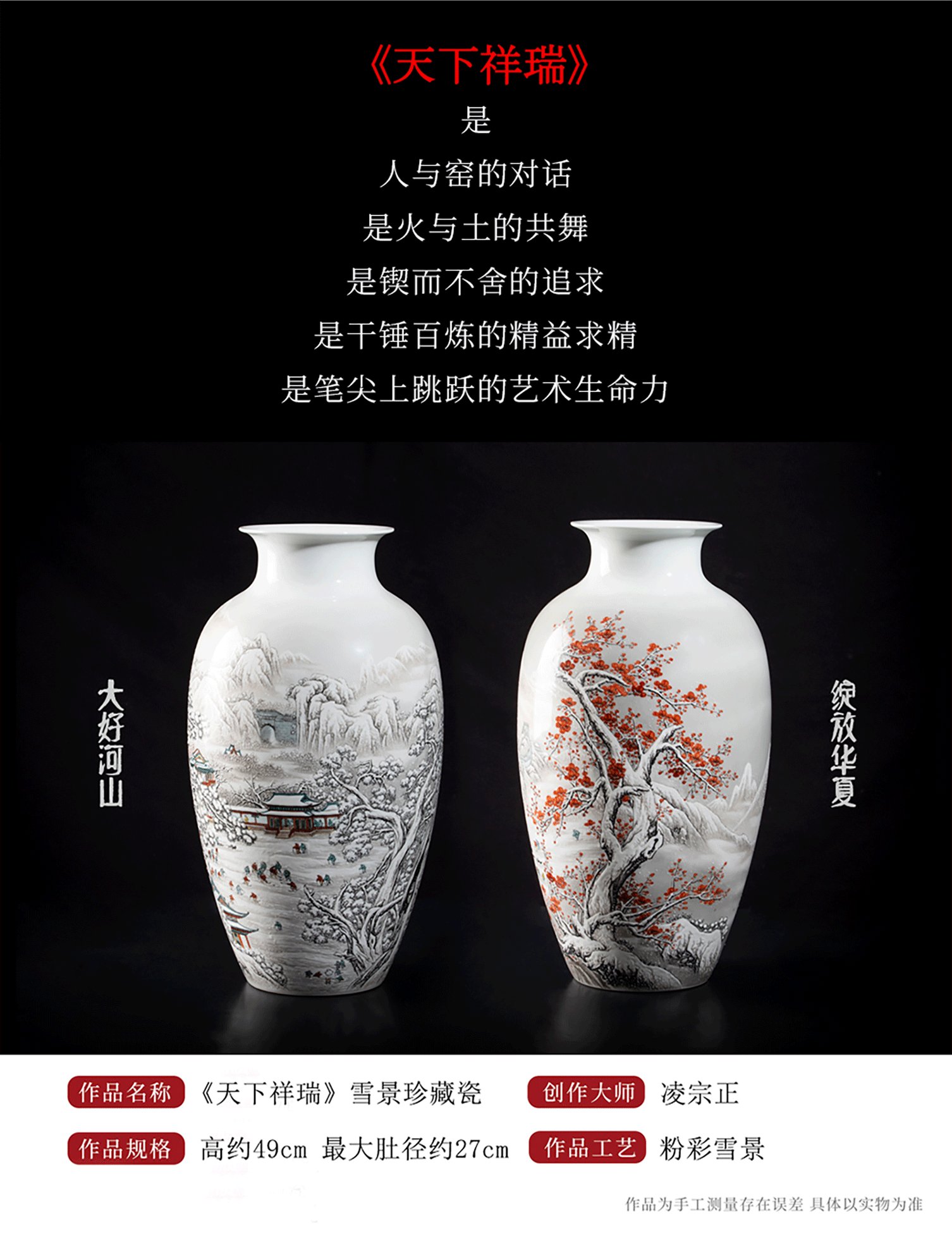 首页 > 瓷器丨内画丨书画 > 瓷器 > 凌宗正 > 《天下祥瑞》对瓶 雪景大王 凌宗正 陶瓷艺术雪景珍藏瓷