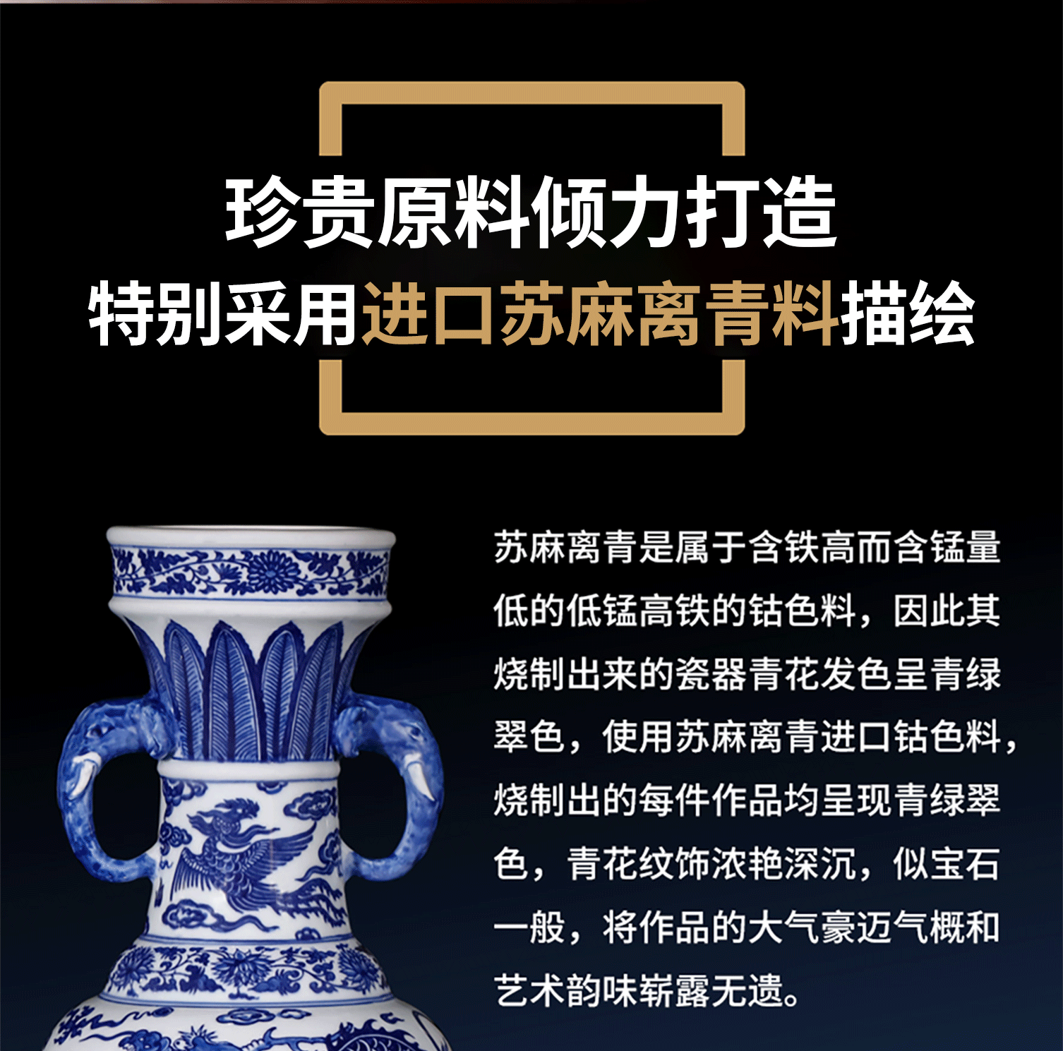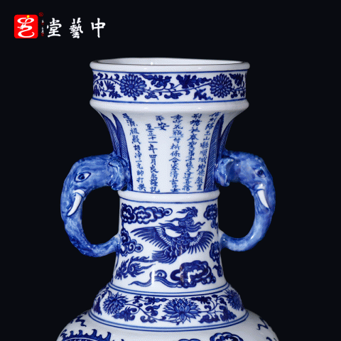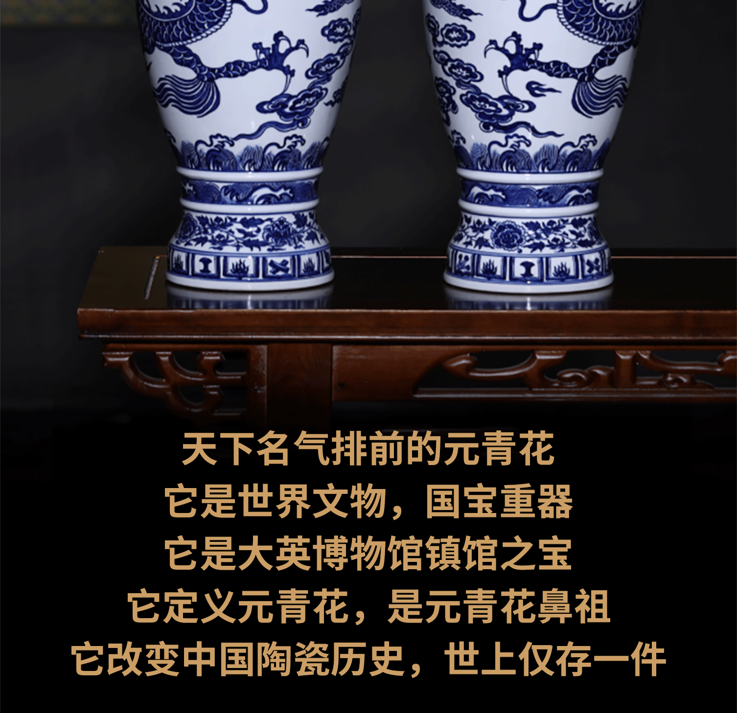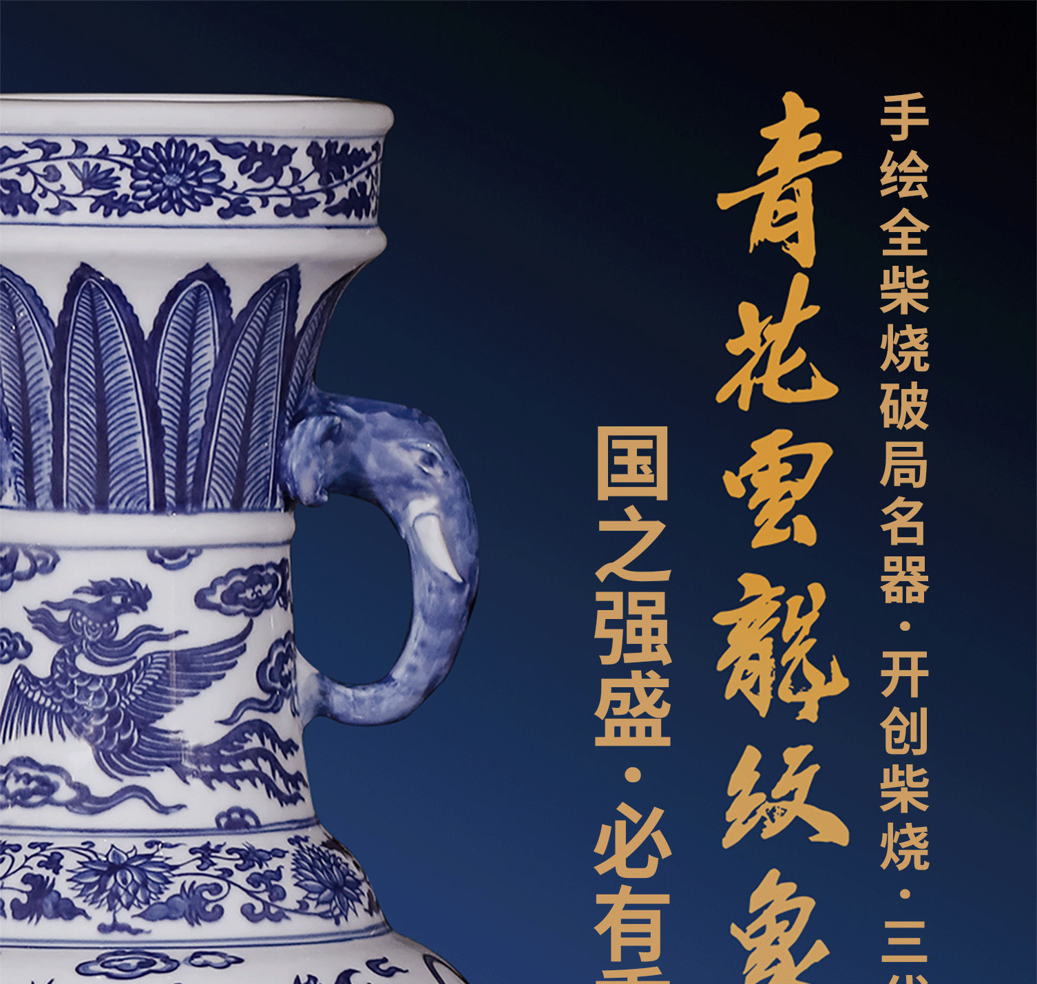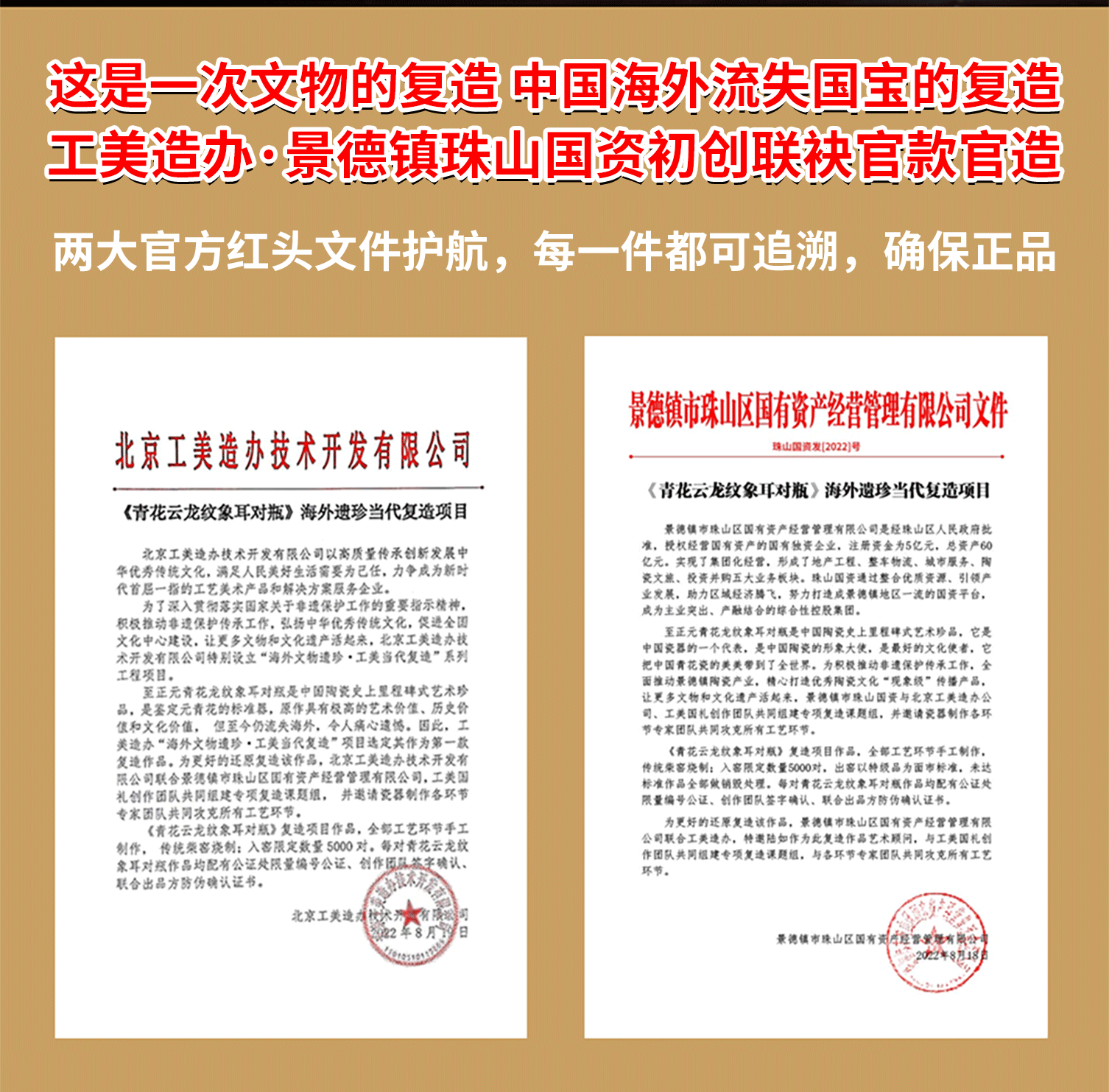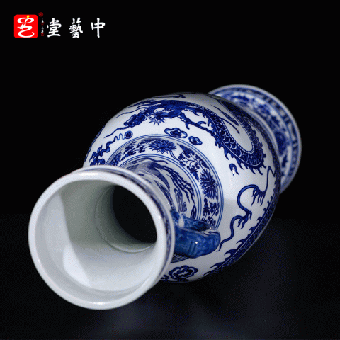 【中藝堂】王怀治老师《青花云龙纹象耳对瓶》陆如陆涛联合创作柴烧对瓶