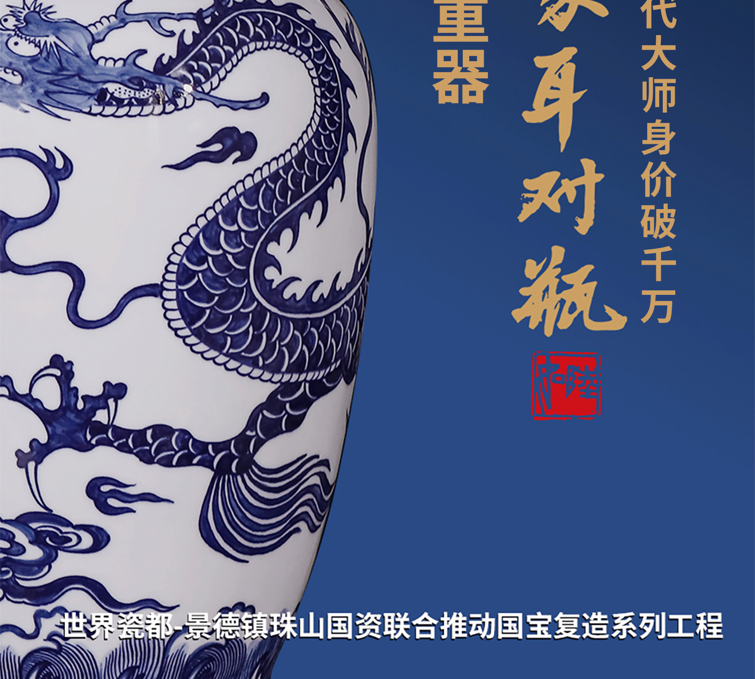 首页 > 瓷器丨内画丨书画 > 瓷器 > 王怀治 > 【中藝堂】王怀治老师《青花云龙纹象耳对瓶》陆如陆涛联合创作柴烧对瓶