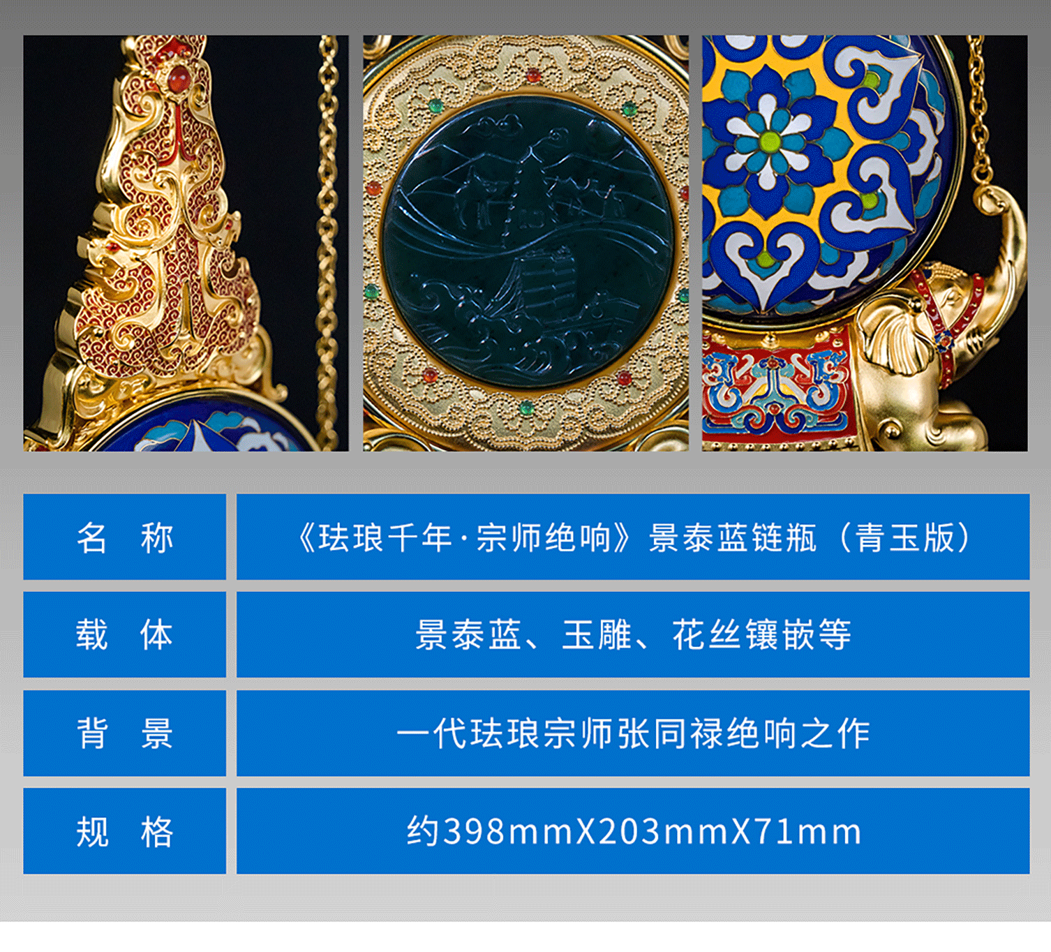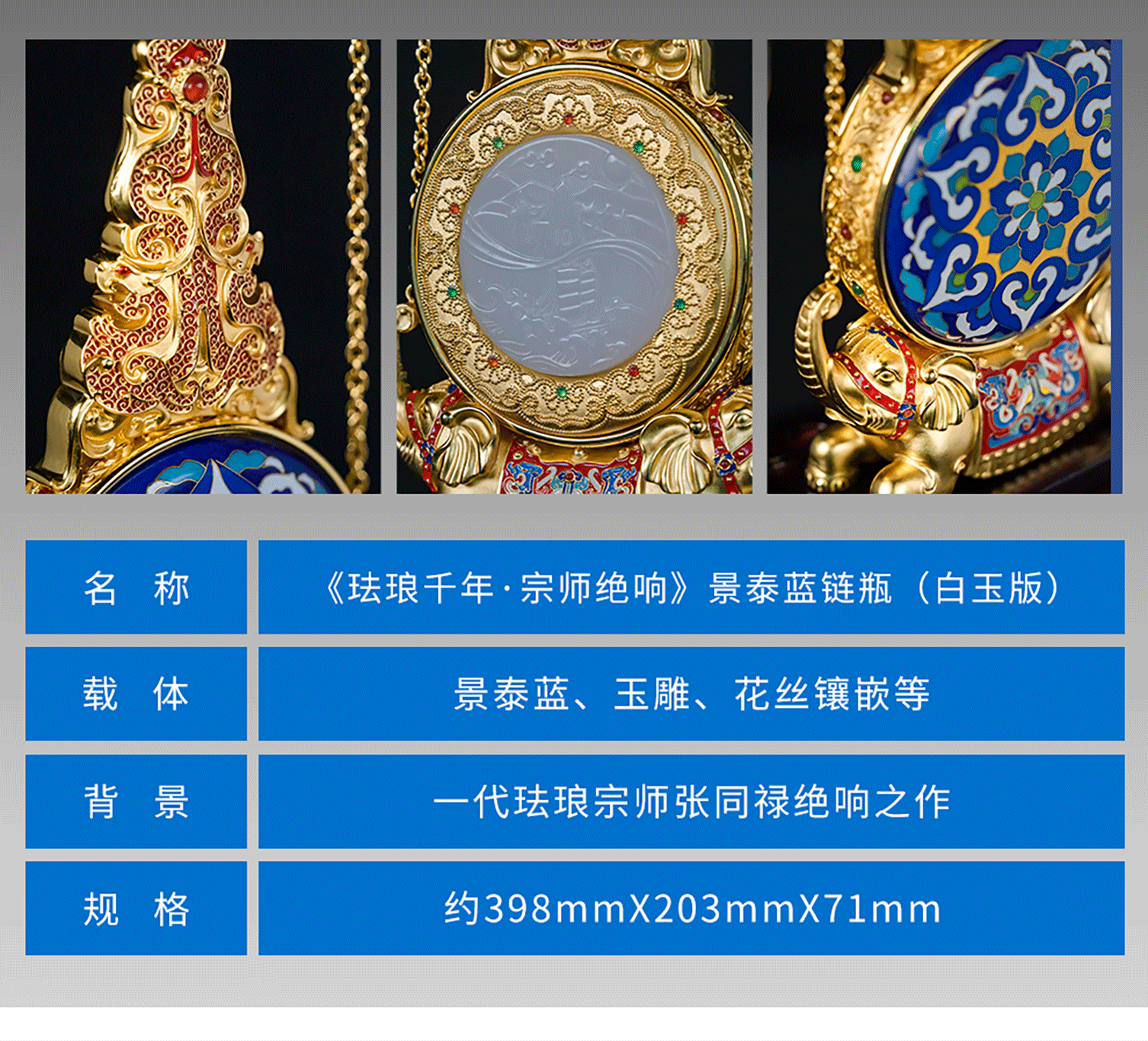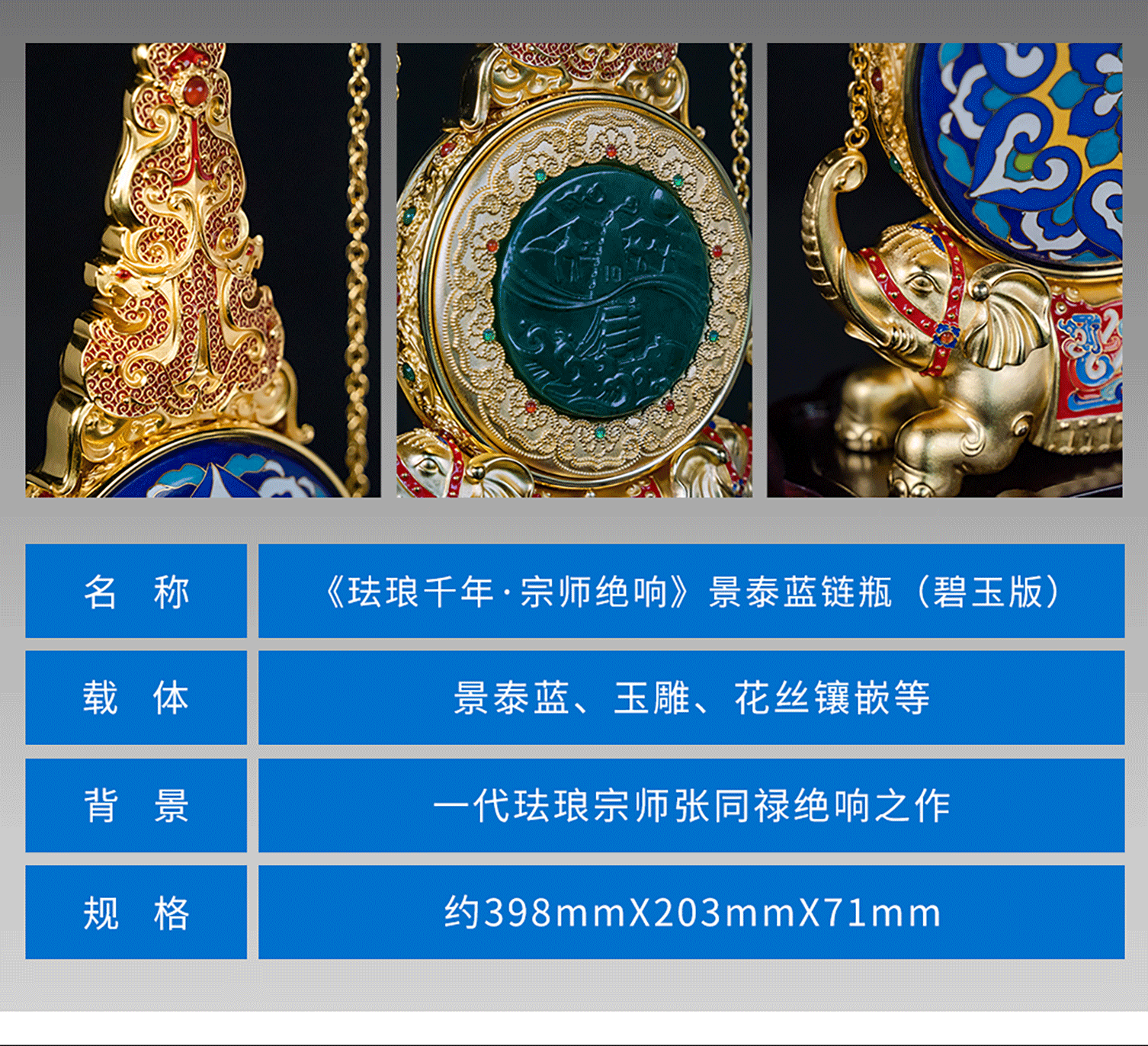 张同禄老师手稿遗作《天下泰平》景泰蓝链瓶集花丝镶嵌玉雕于一身