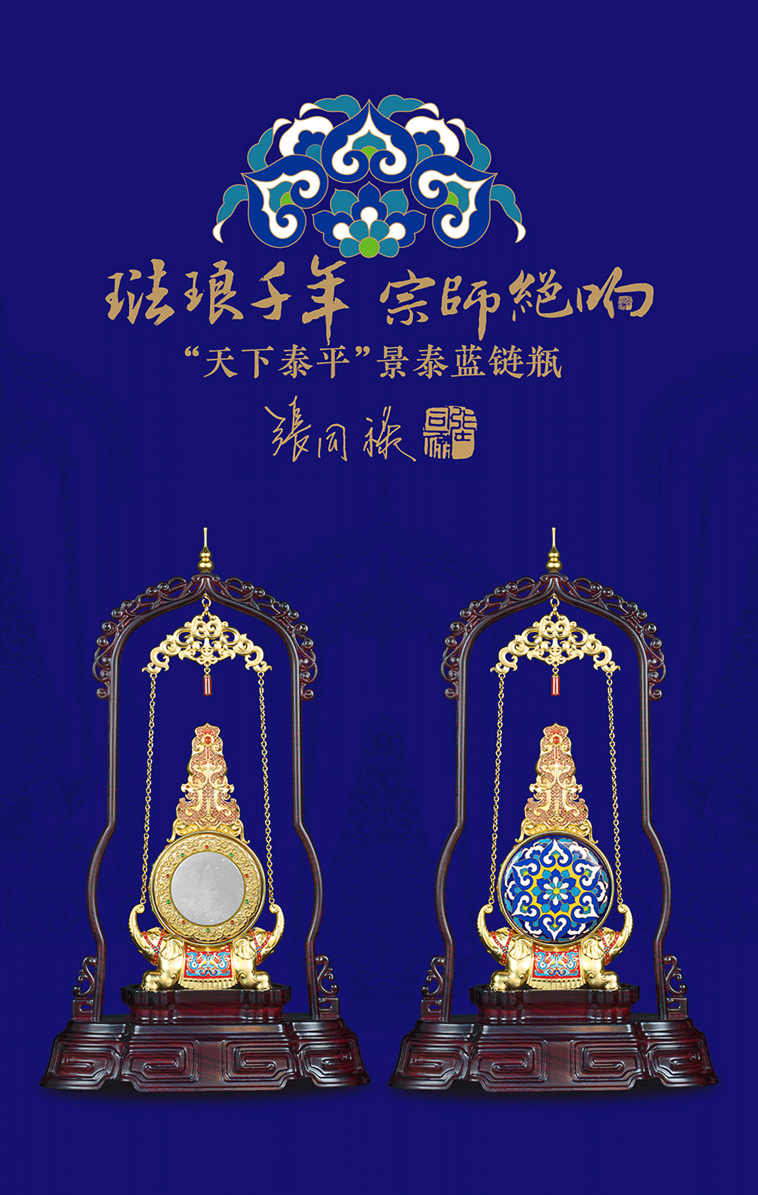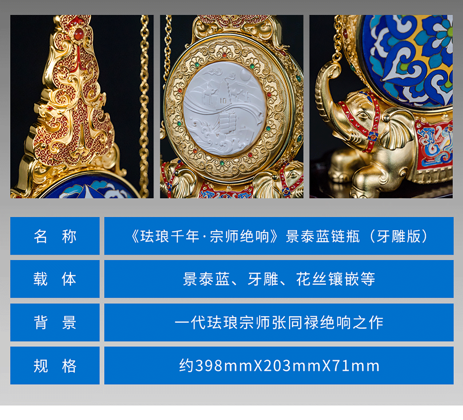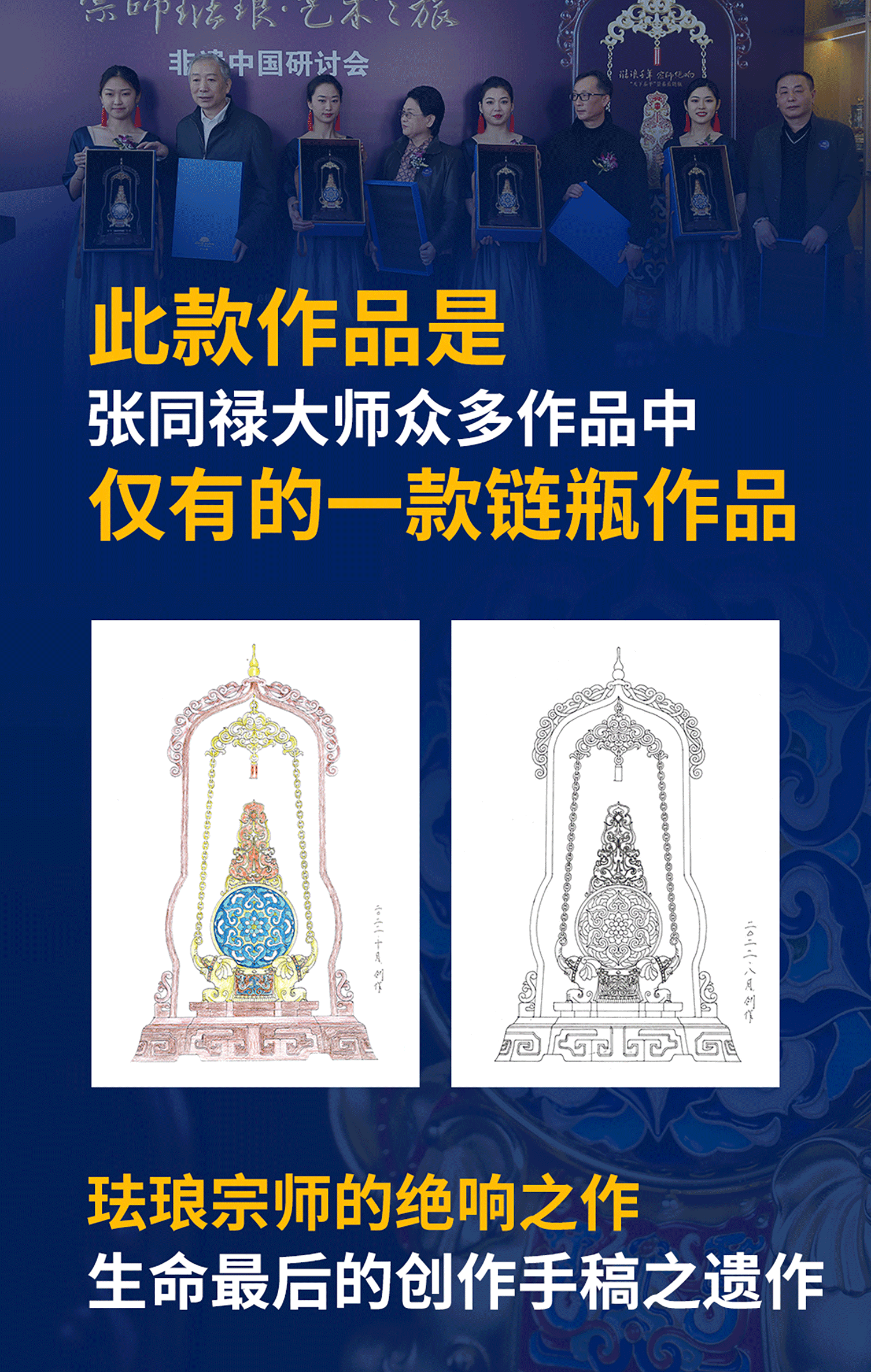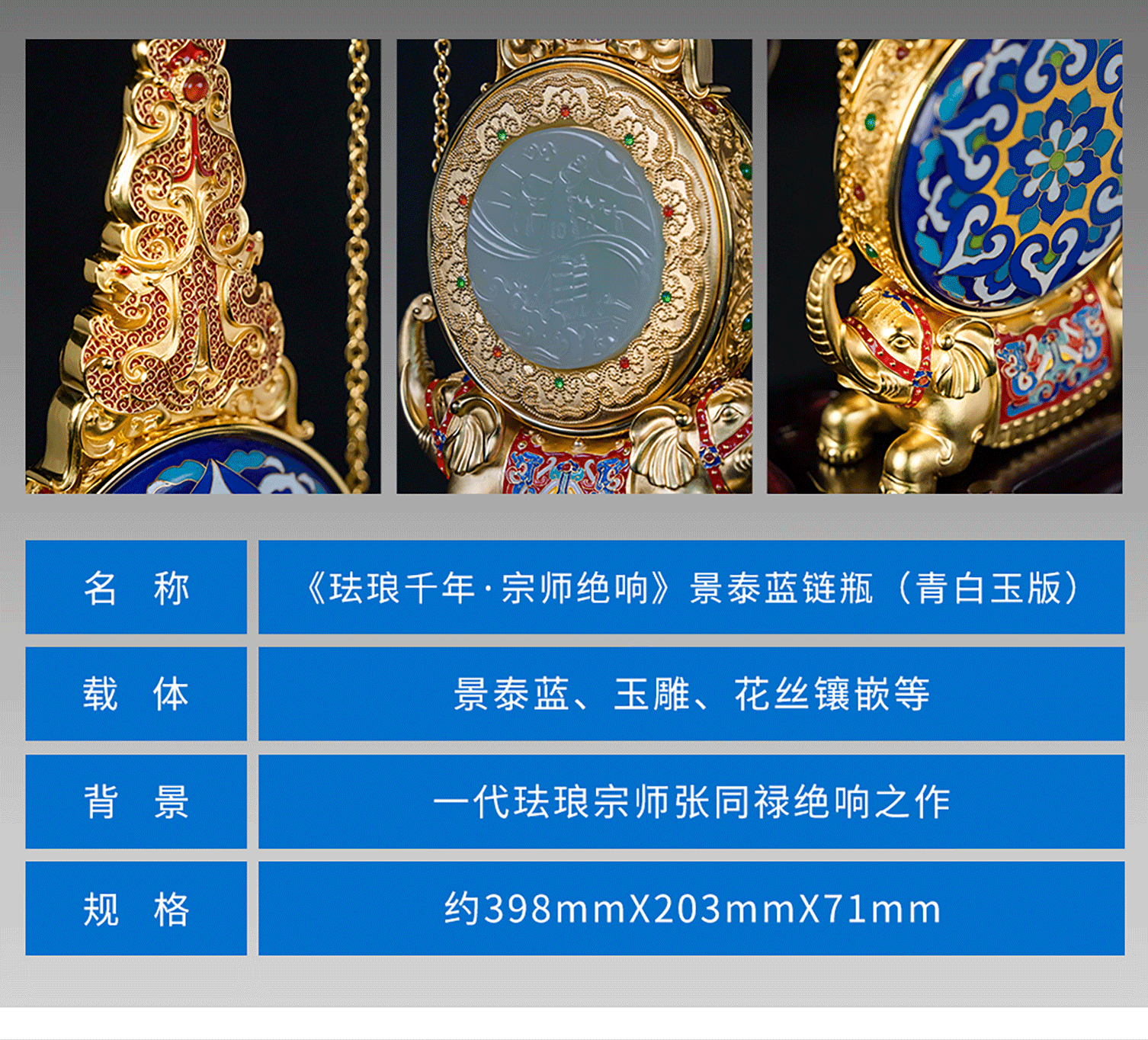 张同禄老师手稿遗作《天下泰平》景泰蓝链瓶集花丝镶嵌玉雕于一身