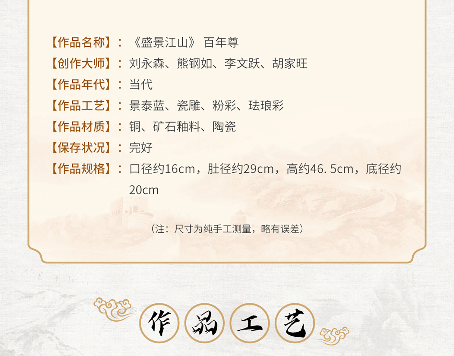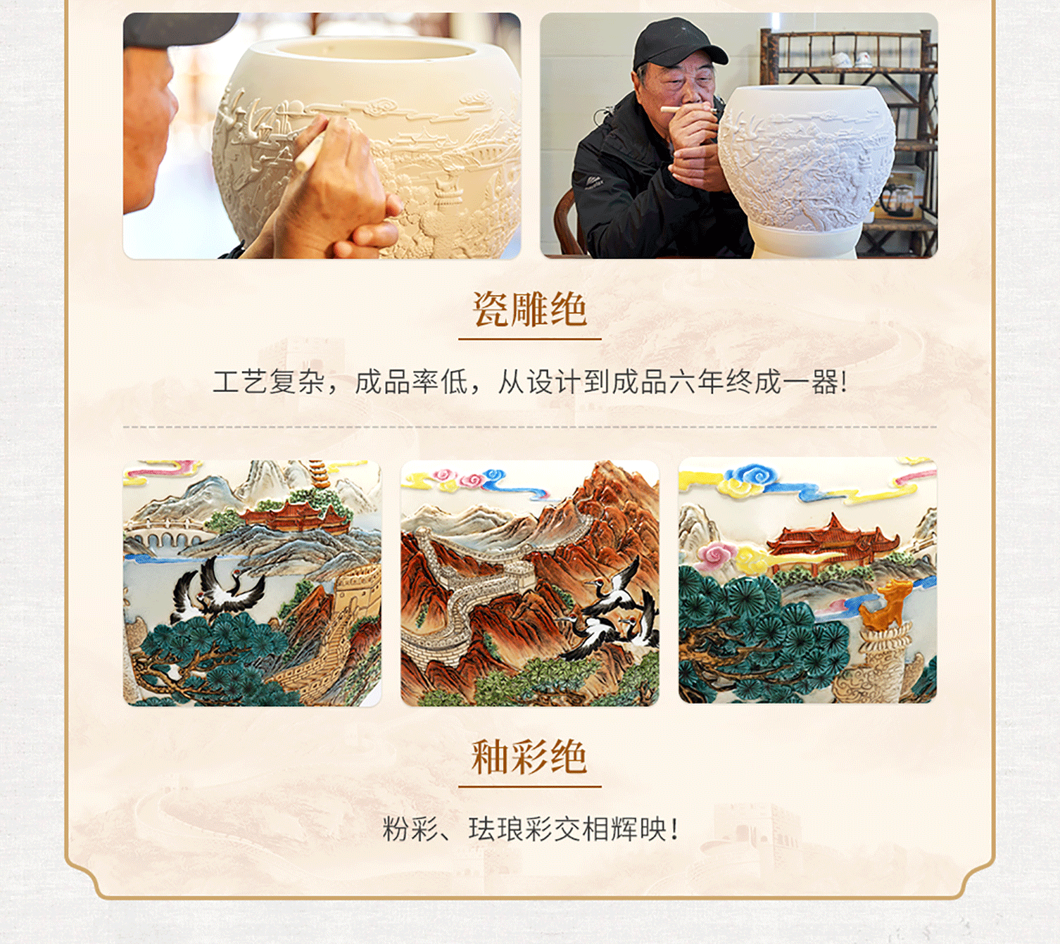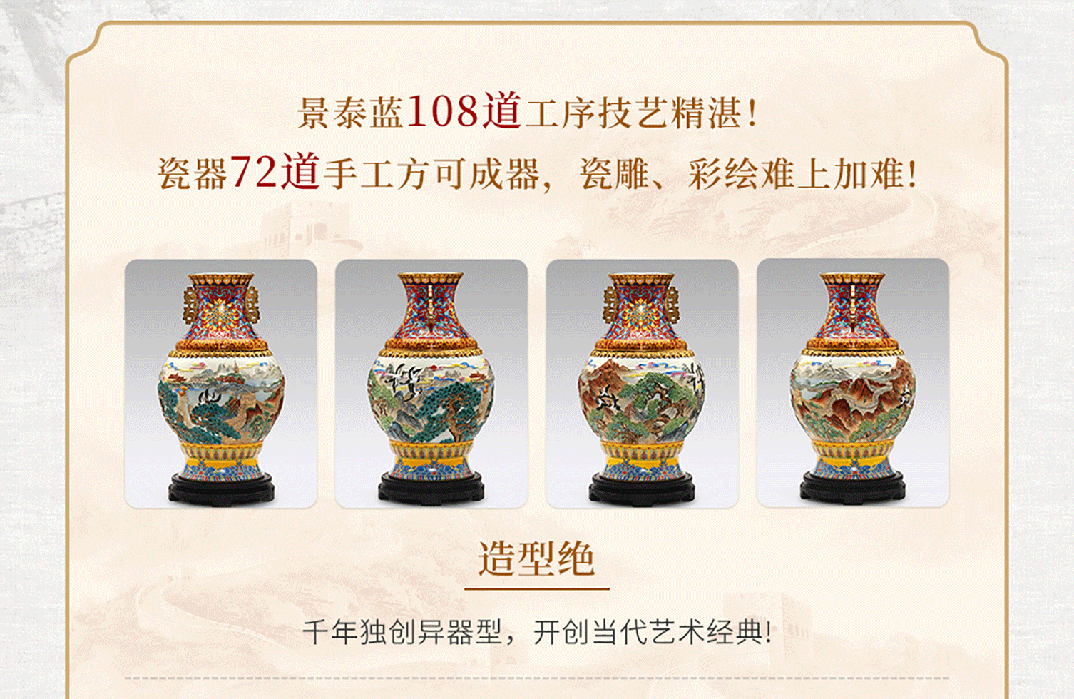 盛景江山百年尊 景泰蓝与瓷雕技艺结合的经典作品