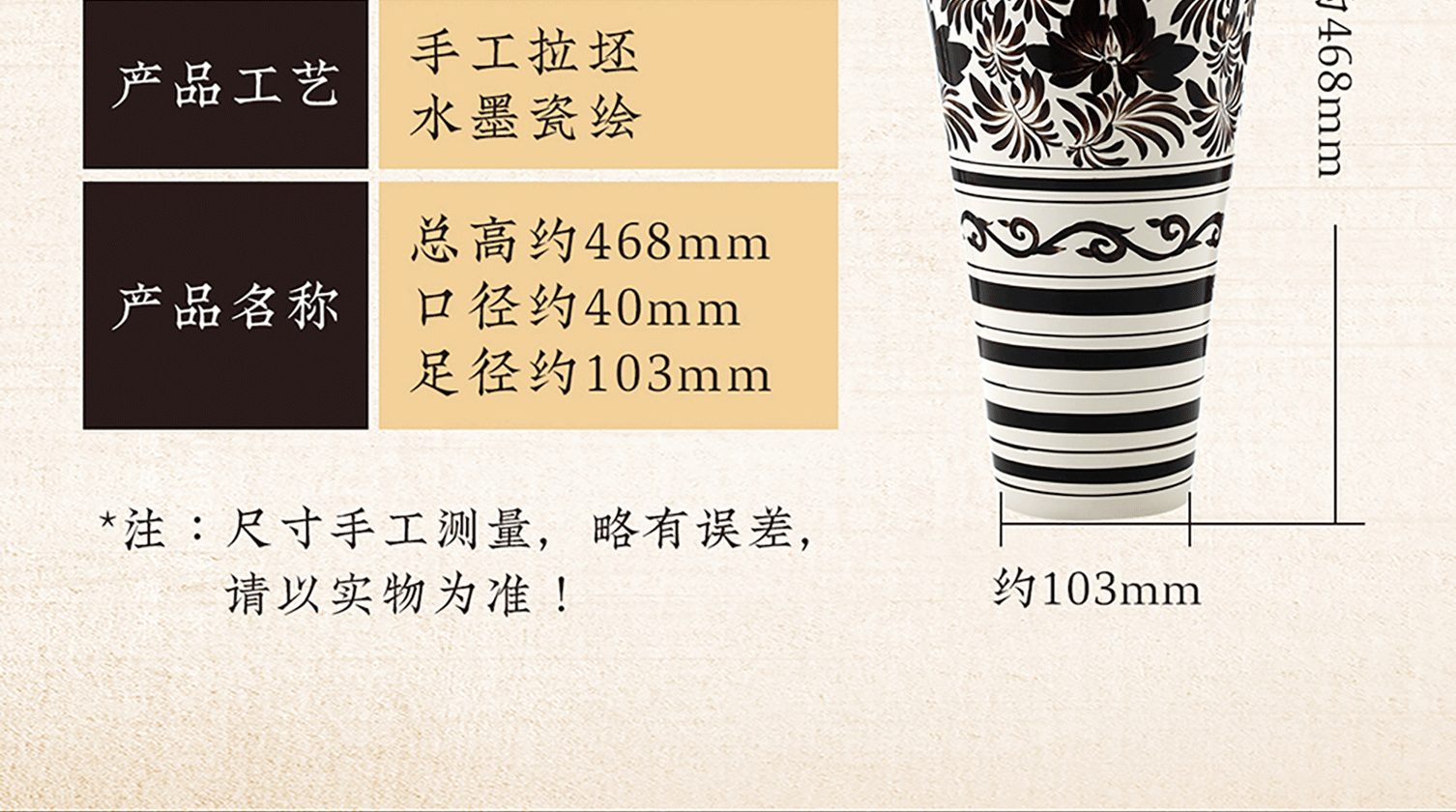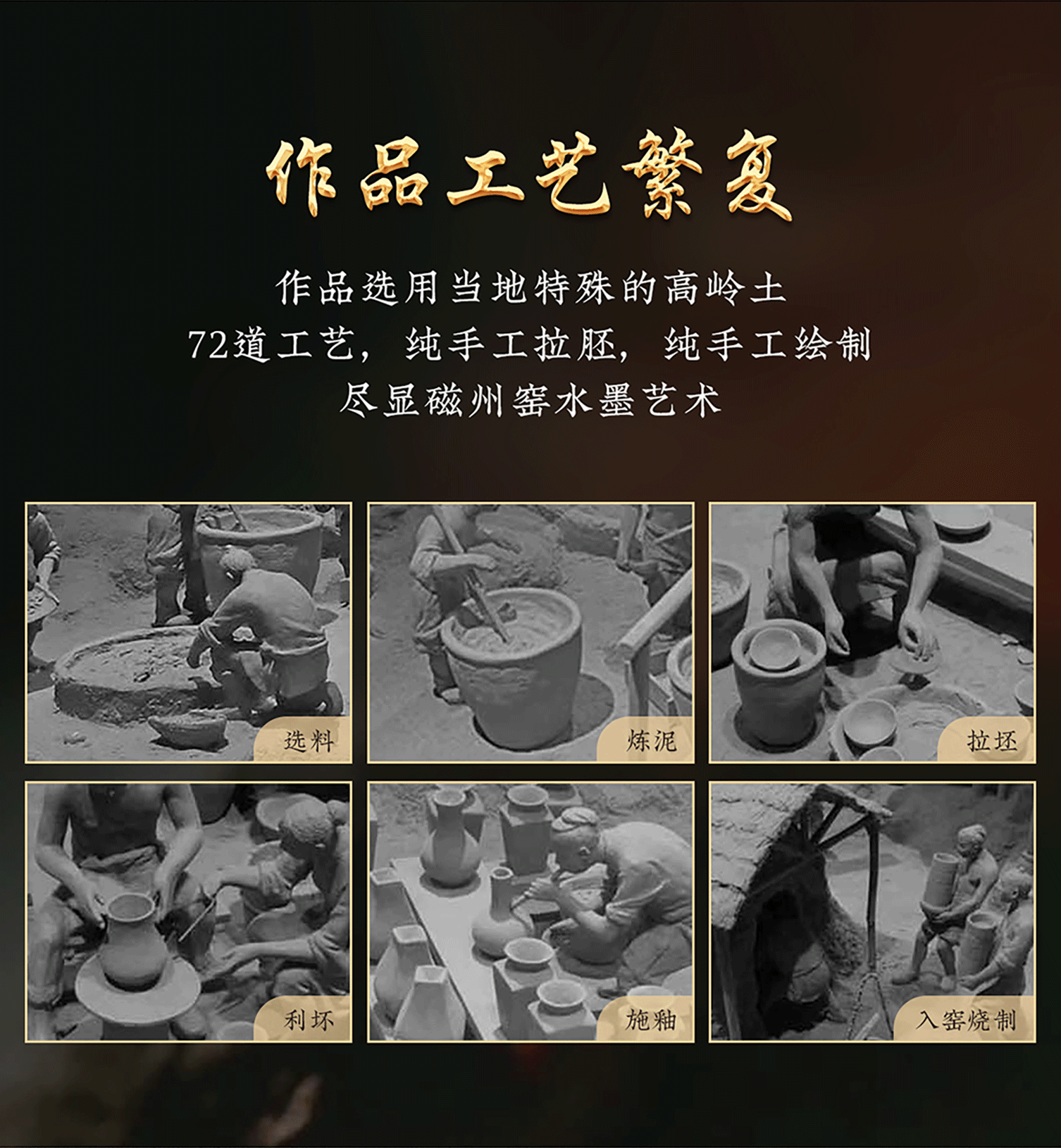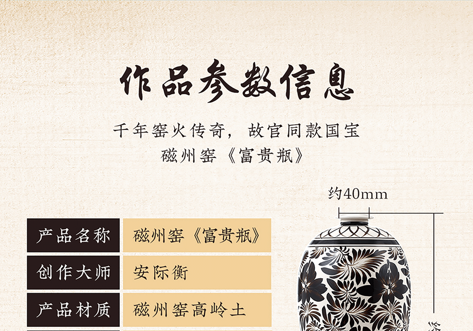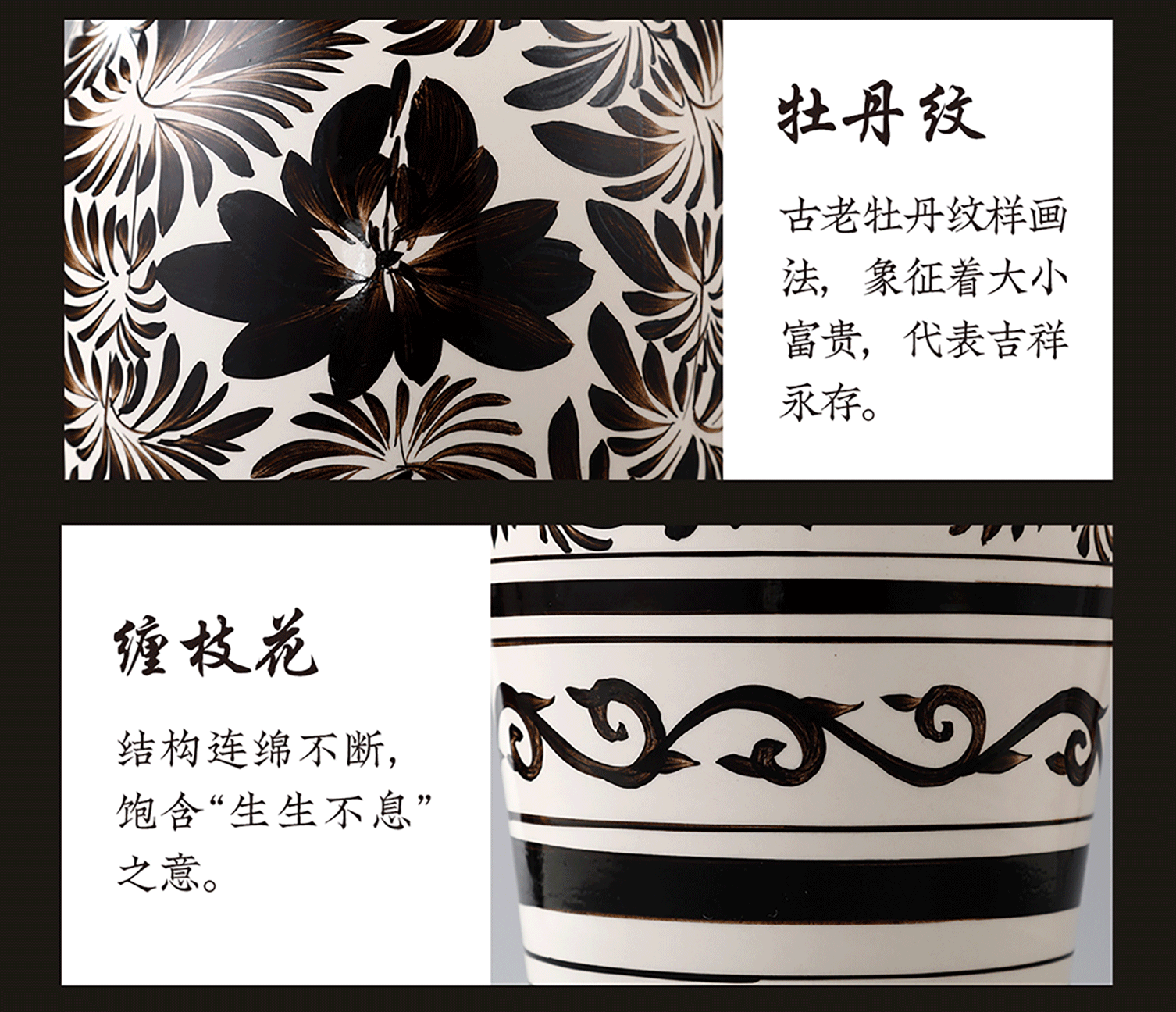 首页 > 景泰蓝丨玉器 > 景泰蓝 > 小件作品 > 磁州窑《富贵瓶》故宫国宝同款水墨风安际衡老师作品