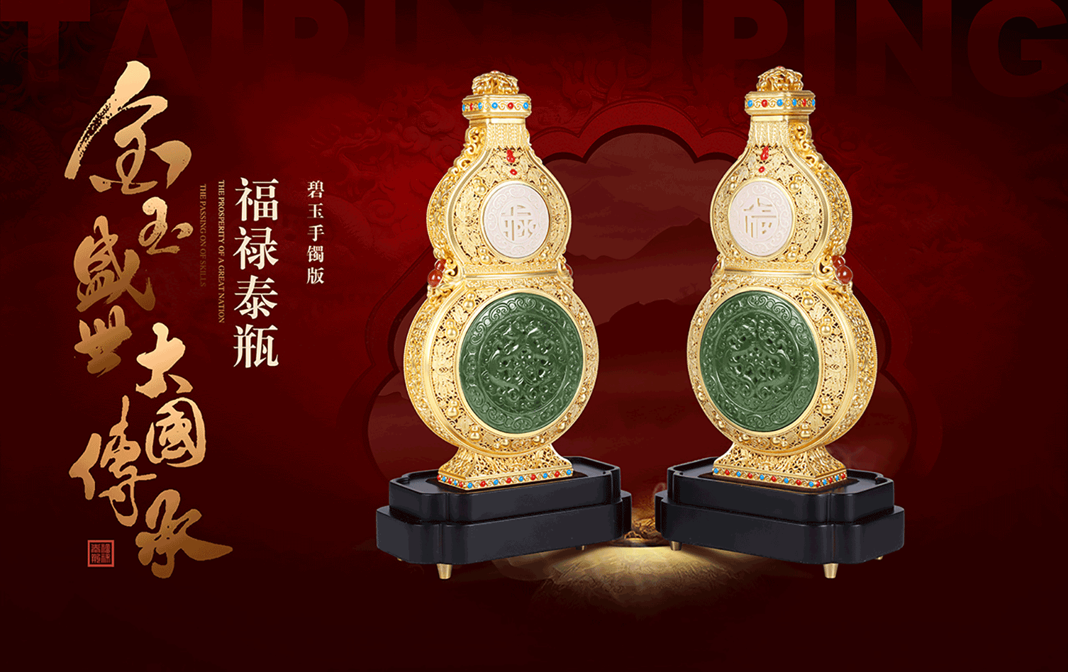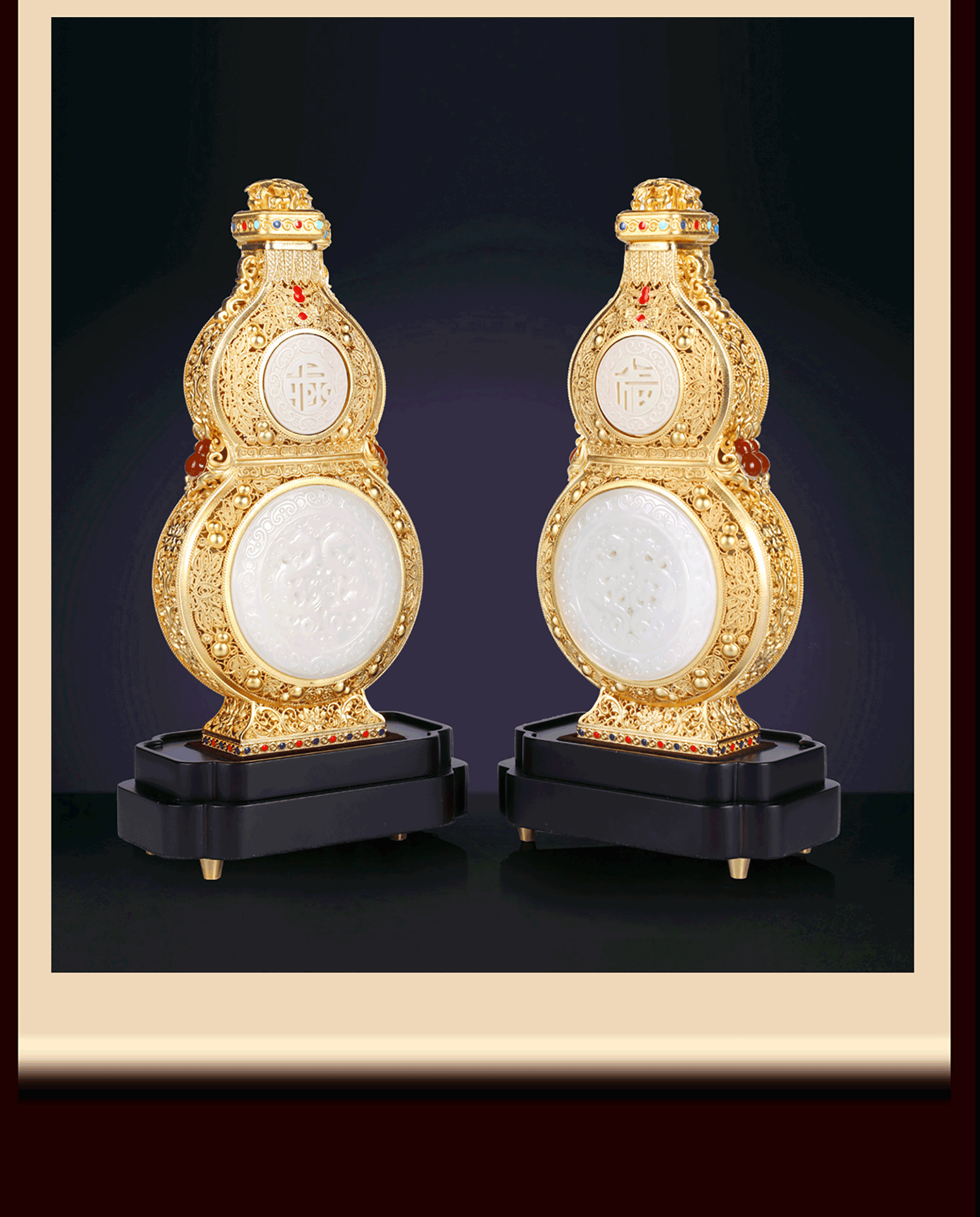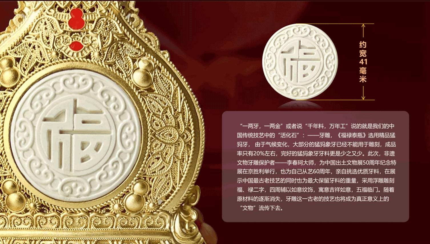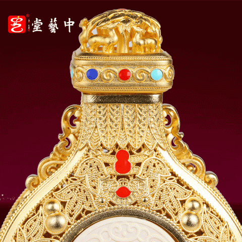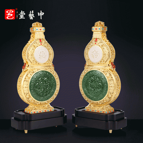 《福禄泰瓶》花丝镶嵌玉雕牙雕结合 三位国老师联合创作葫芦收藏品