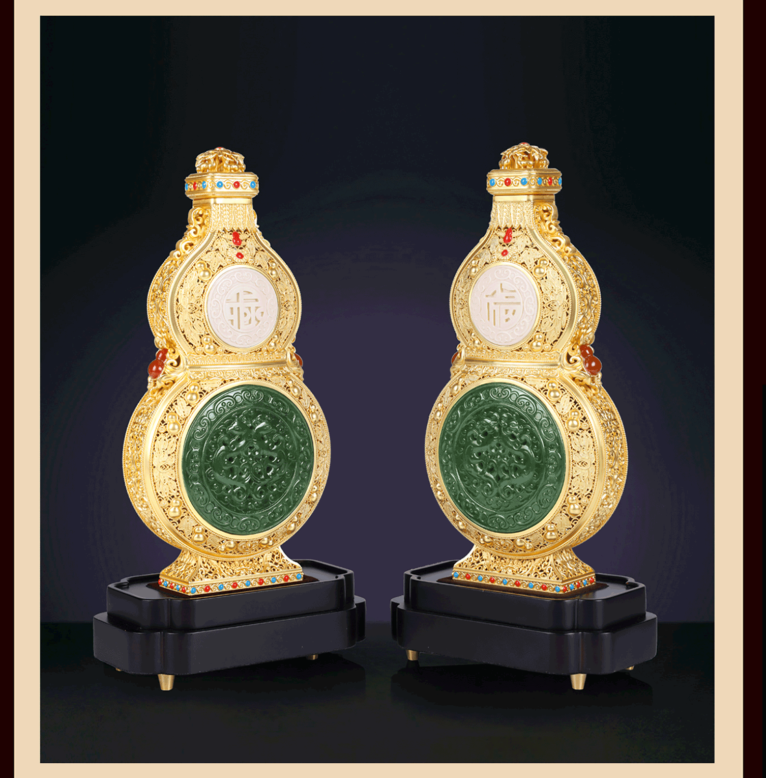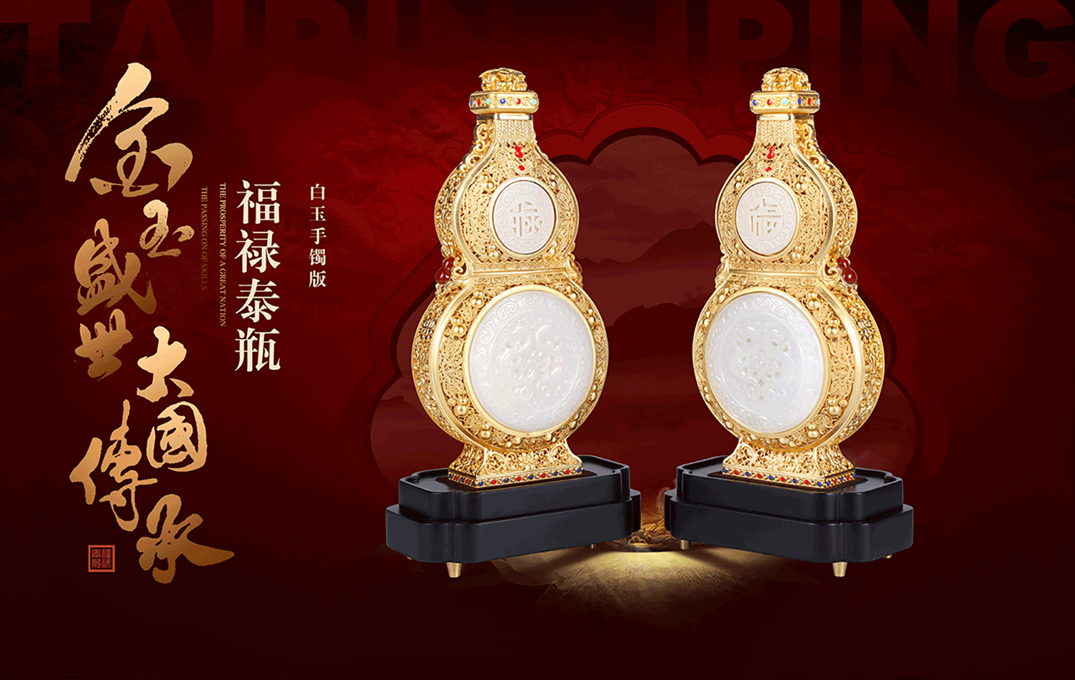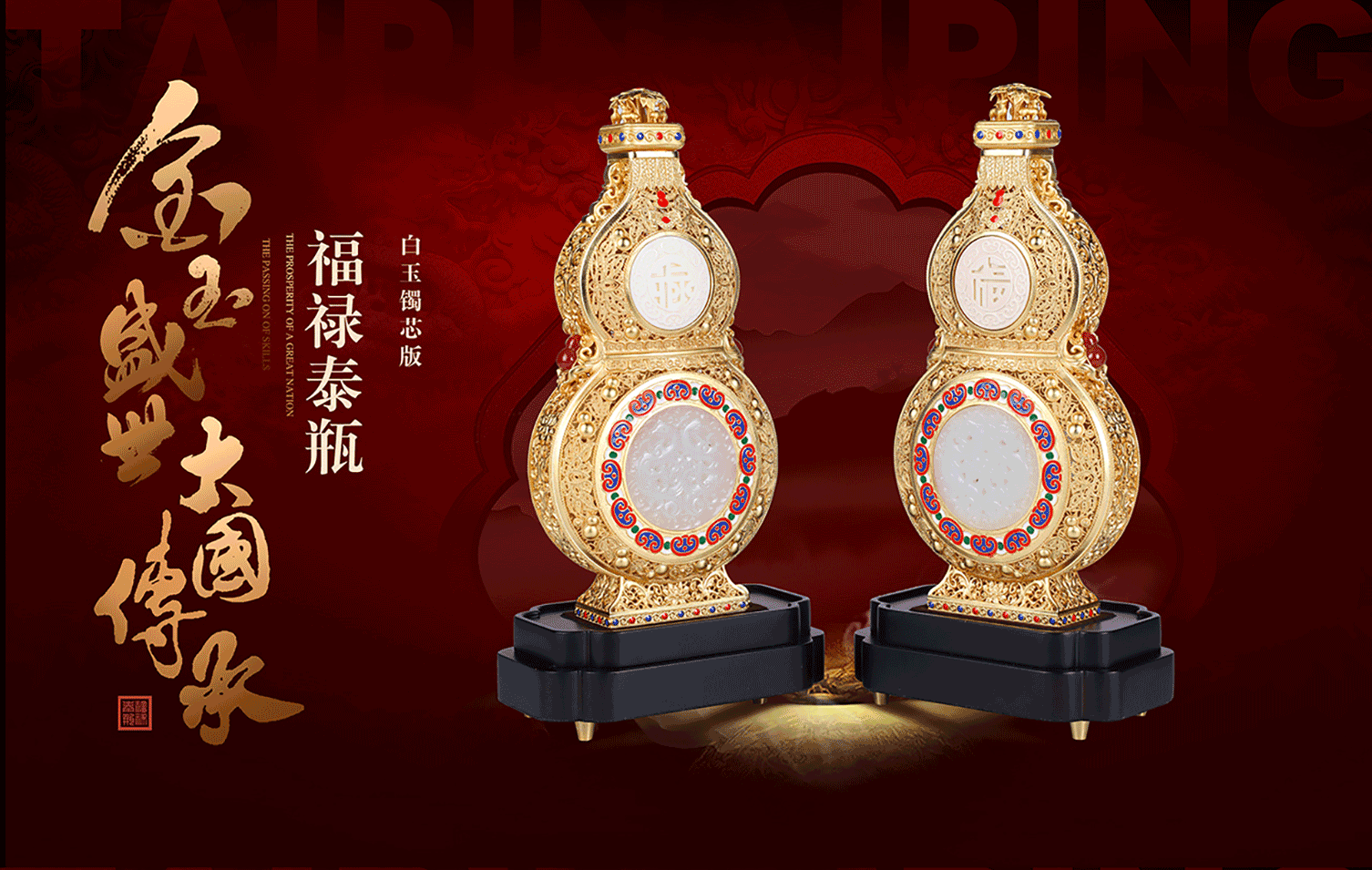 《福禄泰瓶》花丝镶嵌玉雕牙雕结合 三位国老师联合创作葫芦收藏品