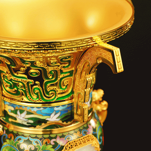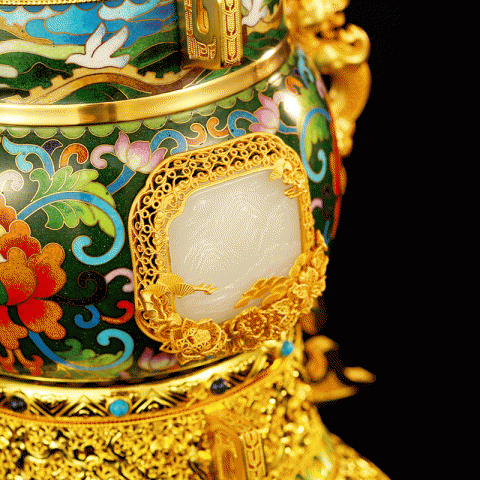 国礼巨献·大师联铸 | 《海晏河清·祥瑞和尊》羊脂白玉版 霍铁辉景泰蓝/袁长君花丝/冯延明玉雕
