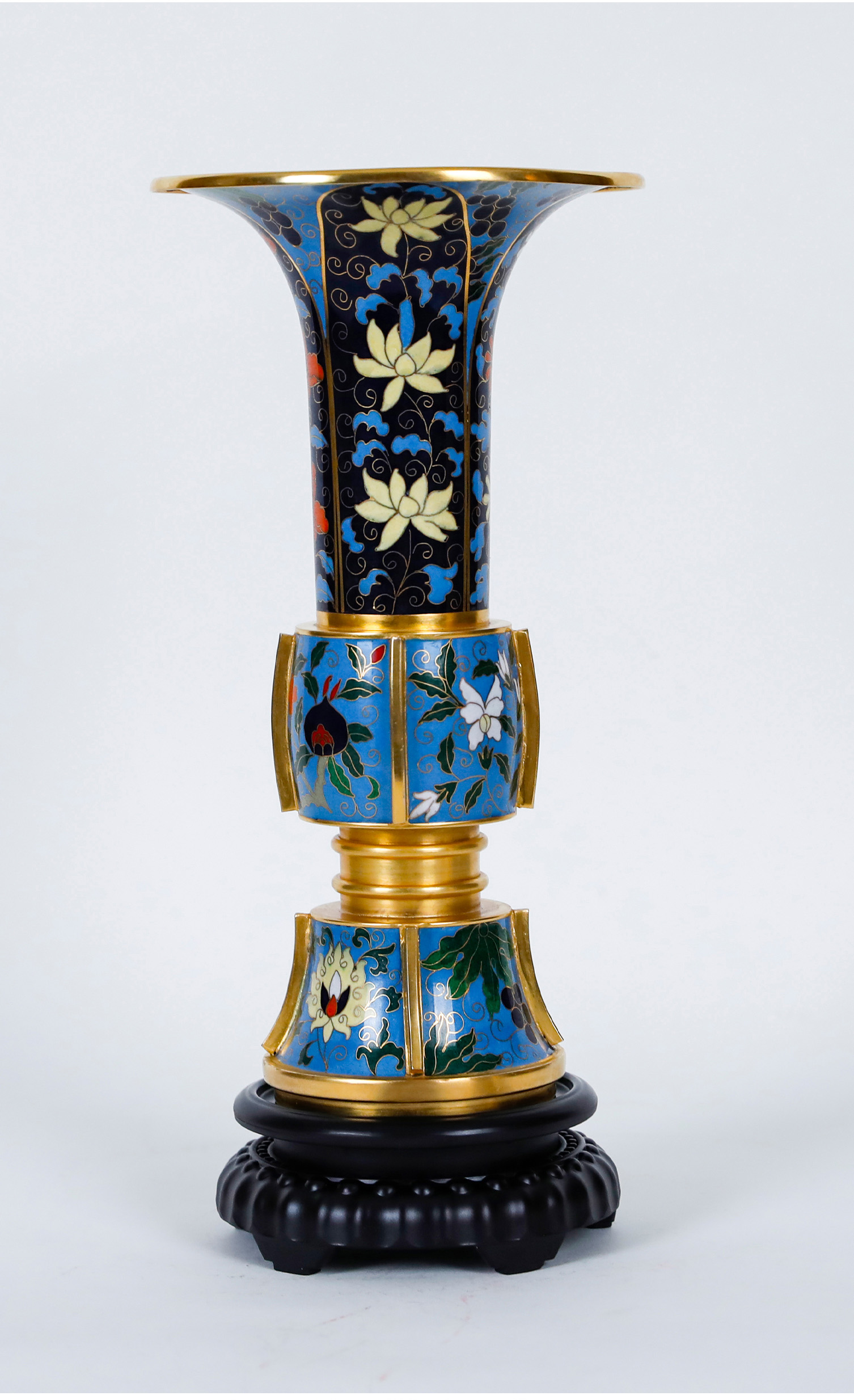霍铁辉大师非遗景泰蓝《出戟花卉纹花觚》